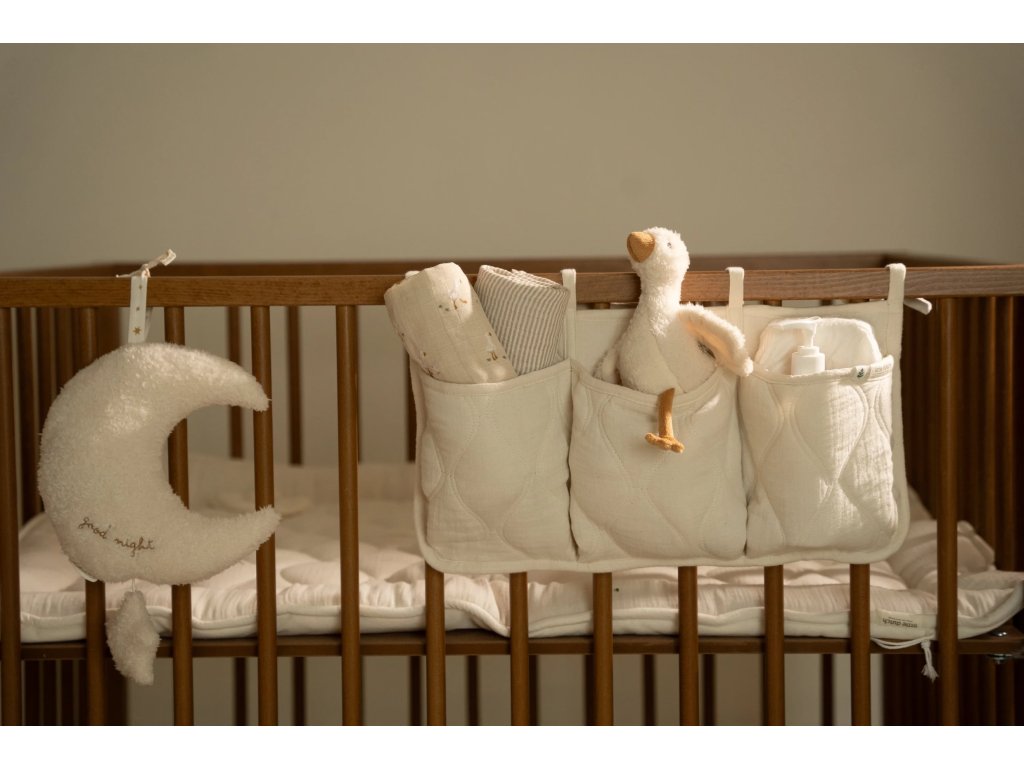Závěsný měsíc je součástí designové kolekce hraček a doplňků Little Dutch Newborn Naturals.