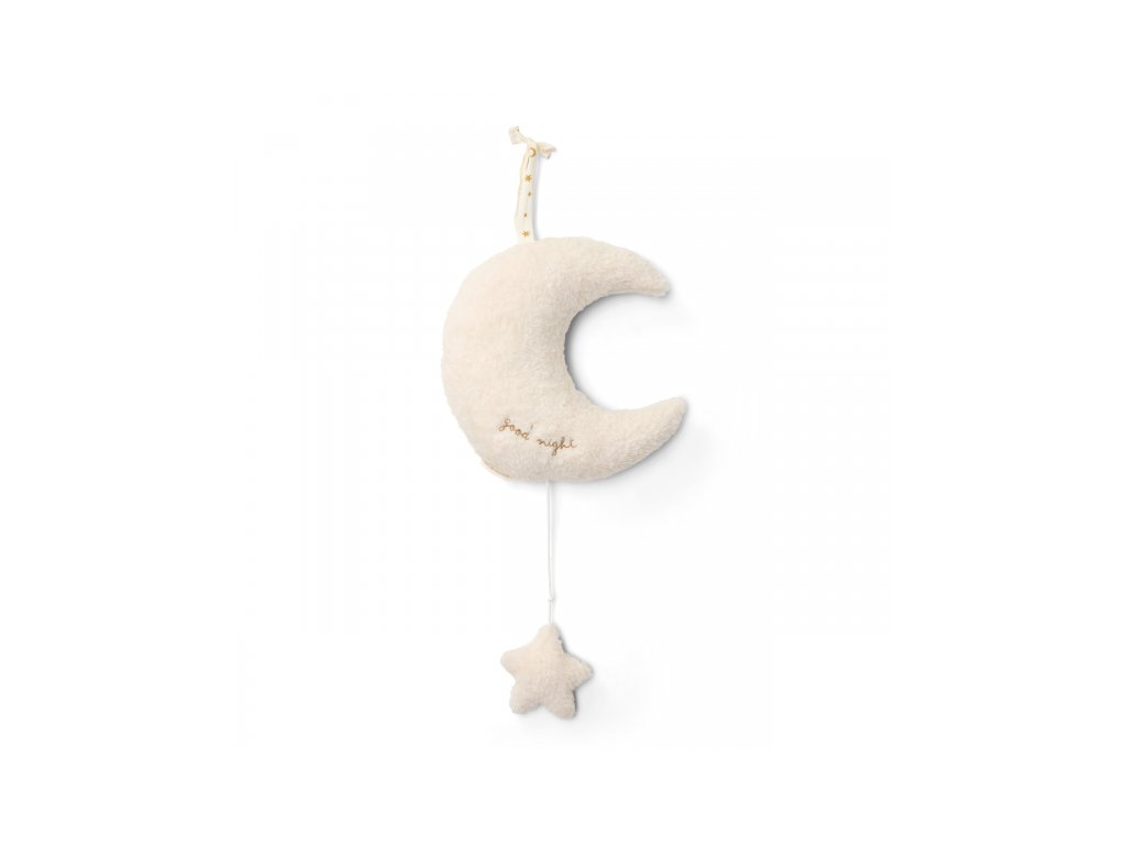 Závěsný plyšový měsíček v sobě skrývá natahovací hudební box s příjemnou ukolébavkou, která vaše miminko uklidní a pomůže mu usnout. Měsíček snadno zavěsíte poblíž postýlky.