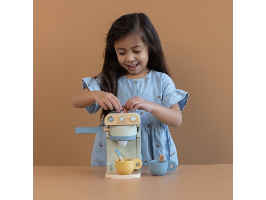 Proměňte každodenní rituál do zábavné hry – s tímto dřevěným kávovarem od Little Dutch se vaše ratolesti stanou pravými malými baristy. Hra na „kávičku“ rozvíjí fantazii, pečlivost i společenské dovednosti, protože děti napodobují dospělé – připravují, servírují, ochutnávají.