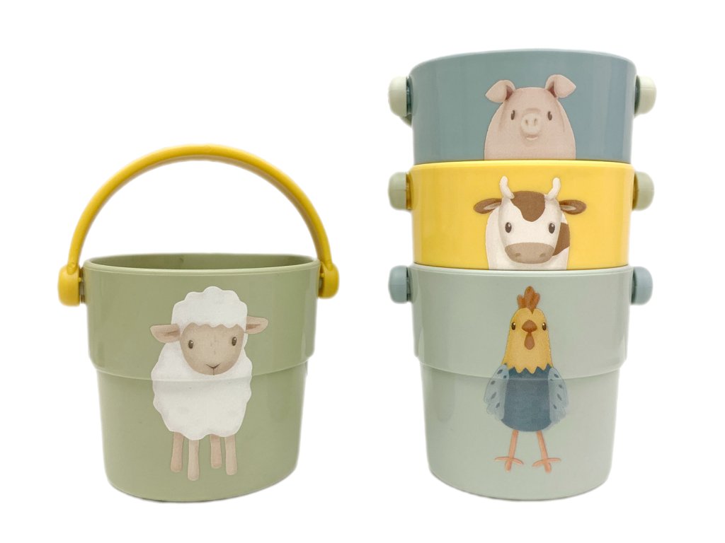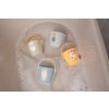 Čtyři malé kyblíčky s držadlem jsou krásným doplňkem do koupele, se kterým se koupání stane ještě zábavnější aktivitou. Jsou skvělé na přelévání vody, ale i na stavění a bourání věže při hraní na suchu.