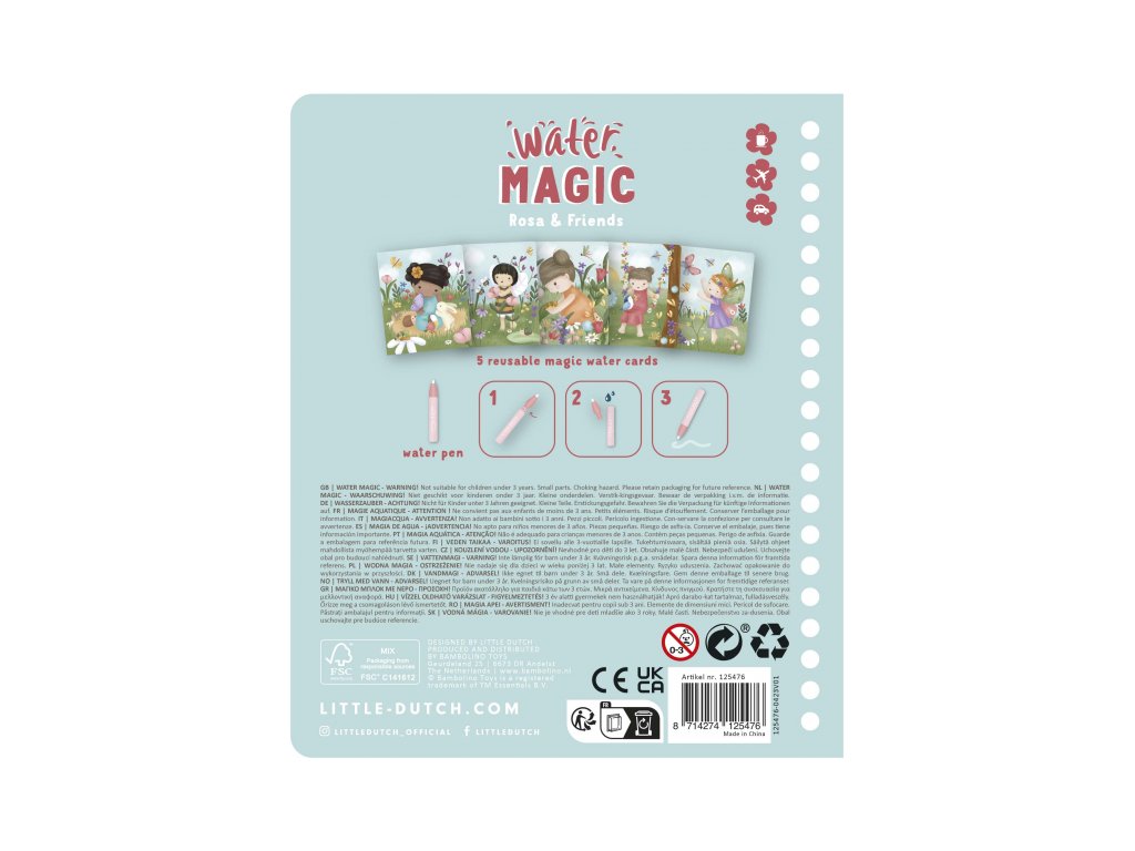 Little Dutch Kniha kouzlení s vodou Rosa & FriendsKouzelná knížka skrývá na svých stránkách krásné ilustrace holčičky Rosy a jejích kamarádů z louky. Ilustrace se odkrývají s pomocí vodního fixu, který je součástí knížky. Stačí fix naplnit vodou a malému umělci či umělkyni se během chvilky postupně vynoří Rosa, zvířátka i pestrobarevná rozkvetlá louka.