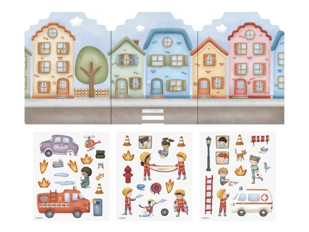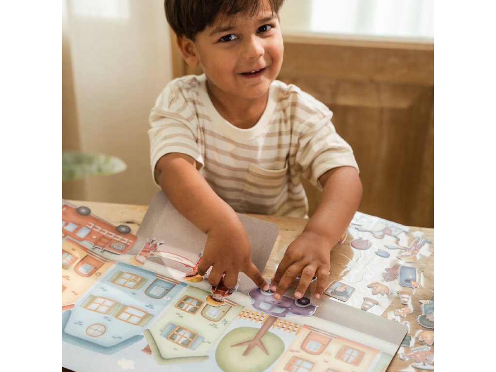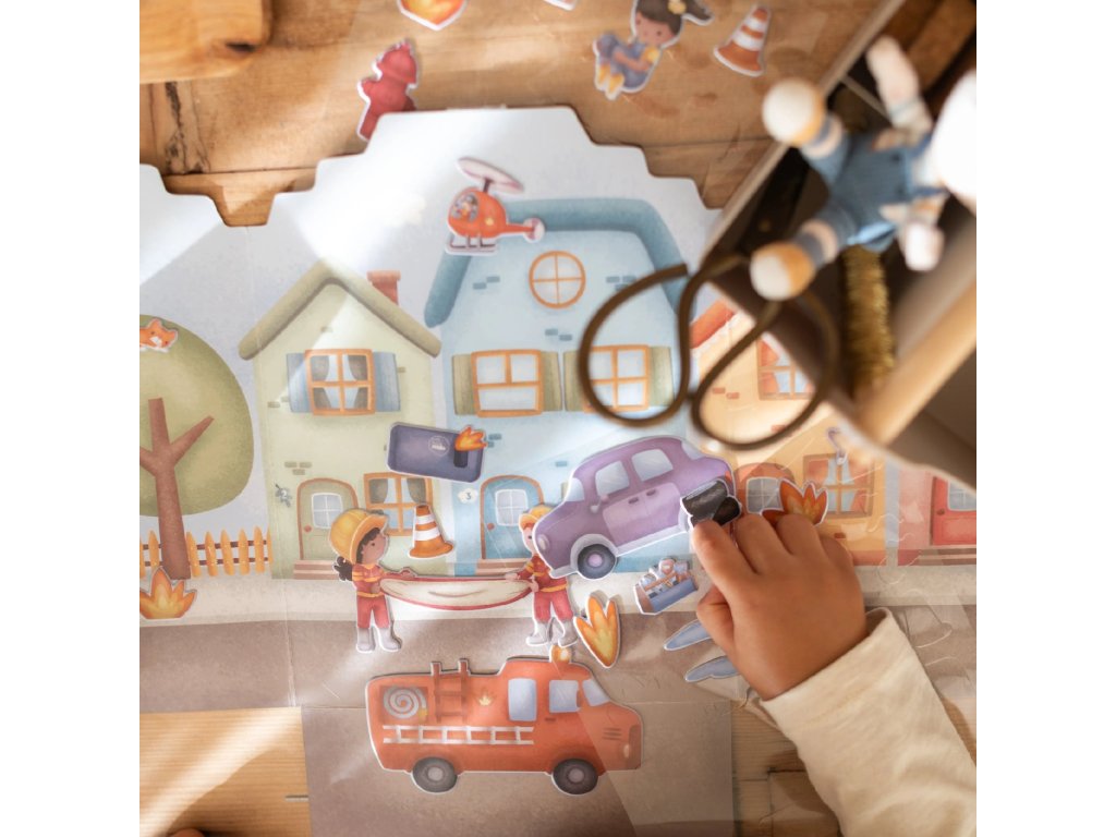 Podpořte dětskou fantazii s touto sadou opakovaně použitelných samolepek Little Dutch. Děti mohou znovu a znovu vyzdobit hasičskou stanici a ulice města více než čtyřiceti veselými 3D samolepkami a pokaždé vytvořit jiný příběh.