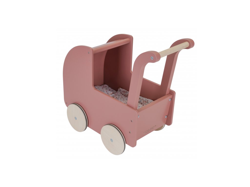 Dětský kočárek v krásném dřevěném provedení je vybaven peřinkou, polštářkem a matrací a vybízí tak k uložení oblíbené panenky či plyšáka vašeho dítěte.