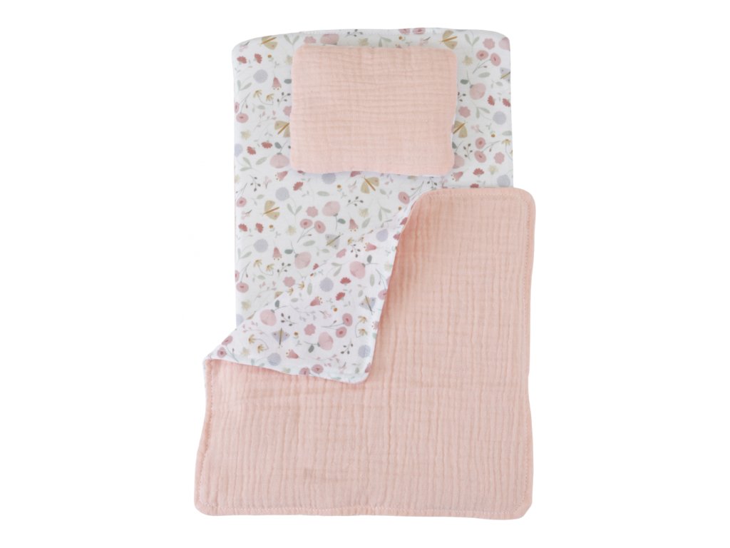 Peřinka a polštářek jsou součástí designové kolekce Little Dutch Květiny a motýli, ve které najdete dekorativní doplňky do dětského pokoje, ložní prádlo, dřevěné a plyšové hračky i jídelní doplňky pro dětské stolování.