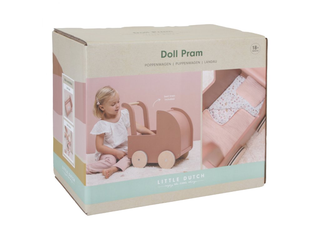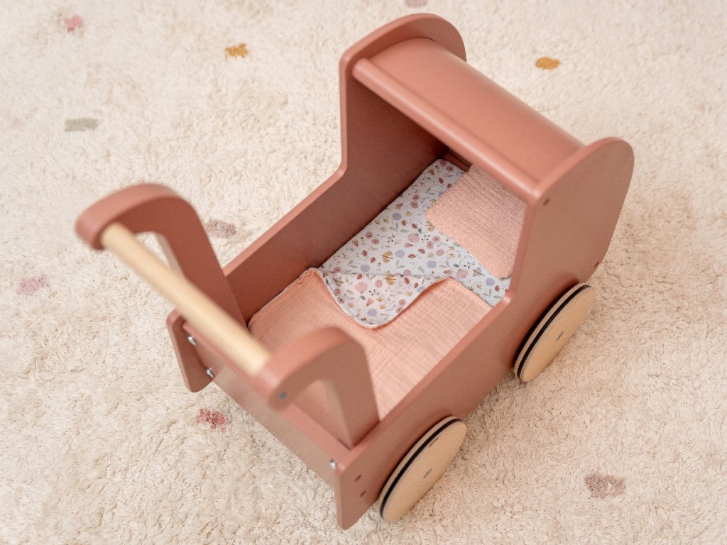 Little Dutch Kočárek pro panenky dřevěný s peřinkou -Květiny a motýli