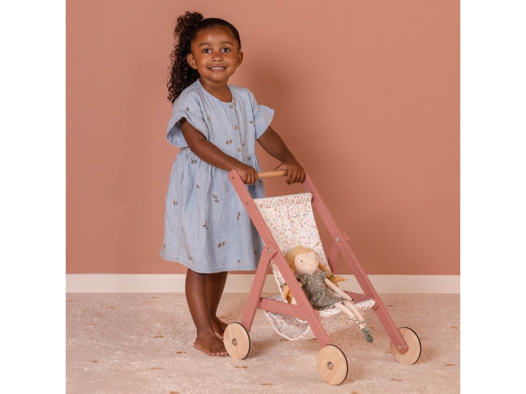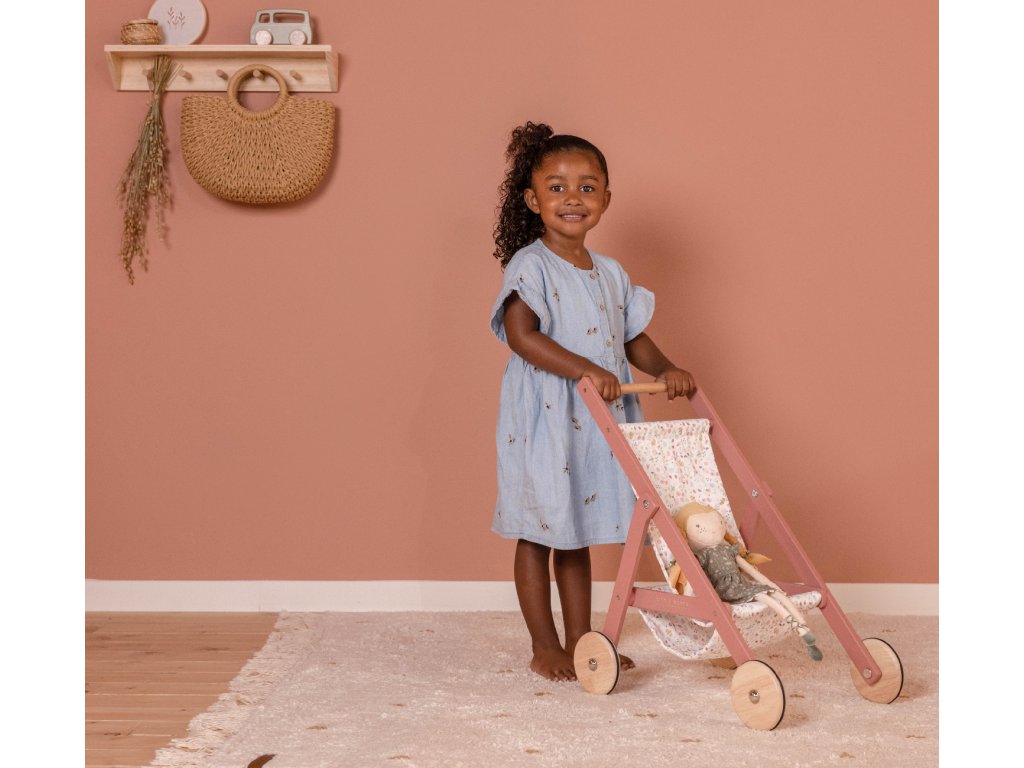 Roztomilý dřevěný kočárek pro panenky z kolekce Květiny a motýli okouzlí svou jemností a funkčností. Slouží nejen pro panenky, ale i pro plyšáky či jiné oblíbené hračky. Je navržen tak, aby byl stabilní a současně snadno ovladatelný malýma dětskýma rukama.
