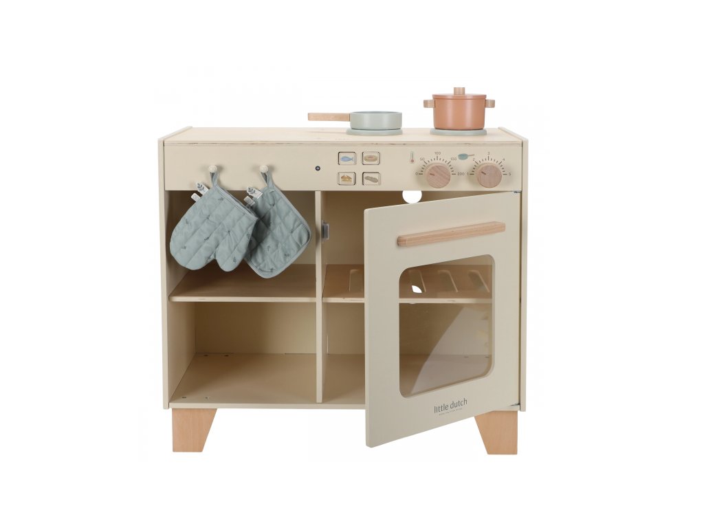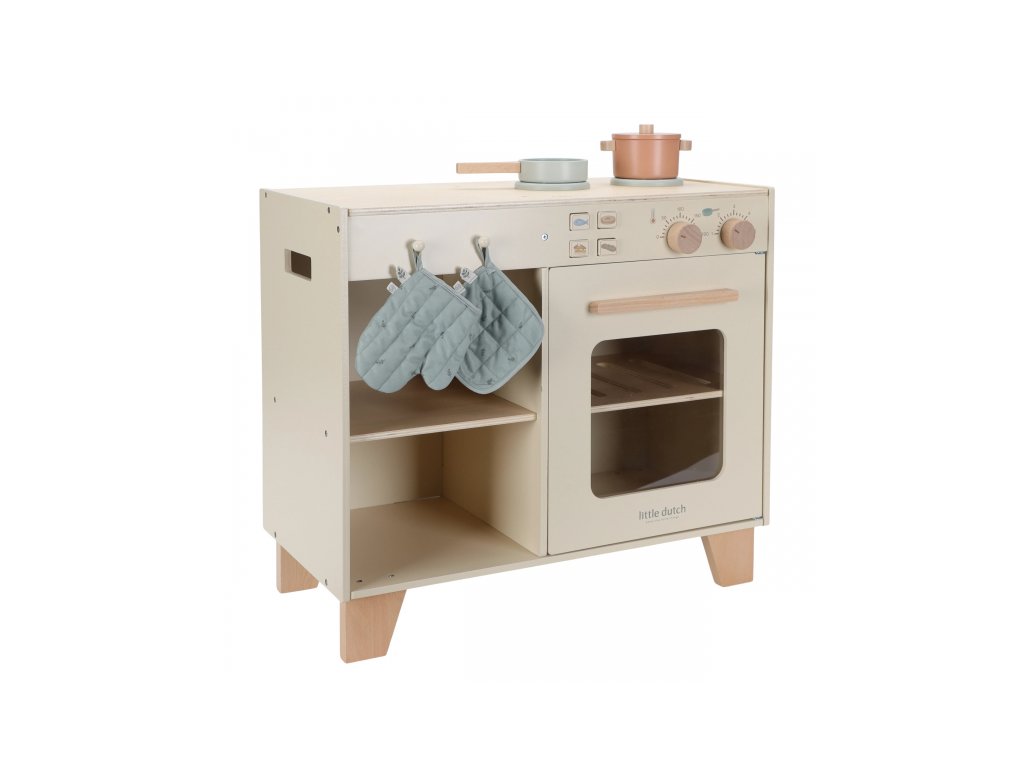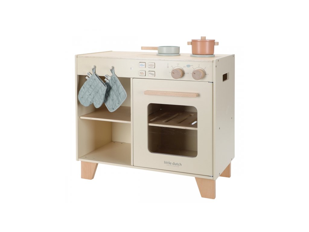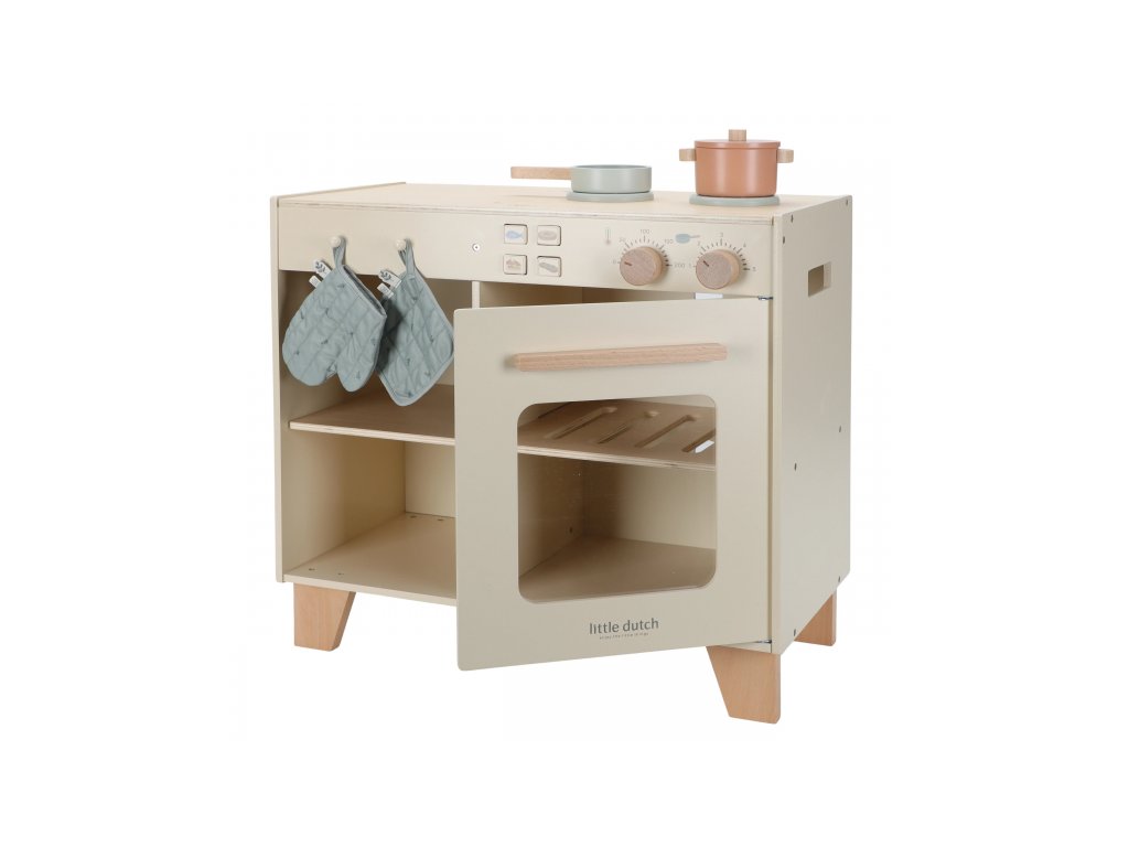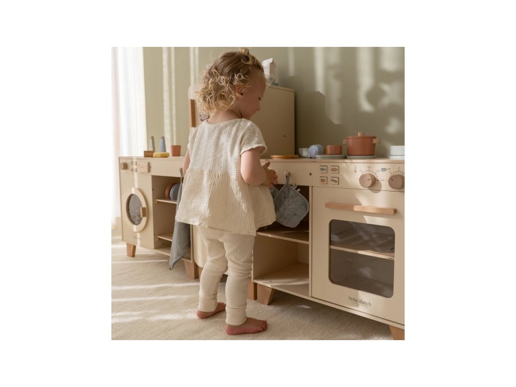 Díky možnosti kombinace s lednicí nebo pračkou z kolekce dřevěných hraček Little Dutch lze vytvořit plně vybavenou herní kuchyň. Tu pak můžete doplnit dalšími dřevěnými hračkami Little Dutch, např. kávovarem, toustovačem, kuchyňskou váhou, krájecím ovocem, krájecí zeleninou, čajovým servisem apod.