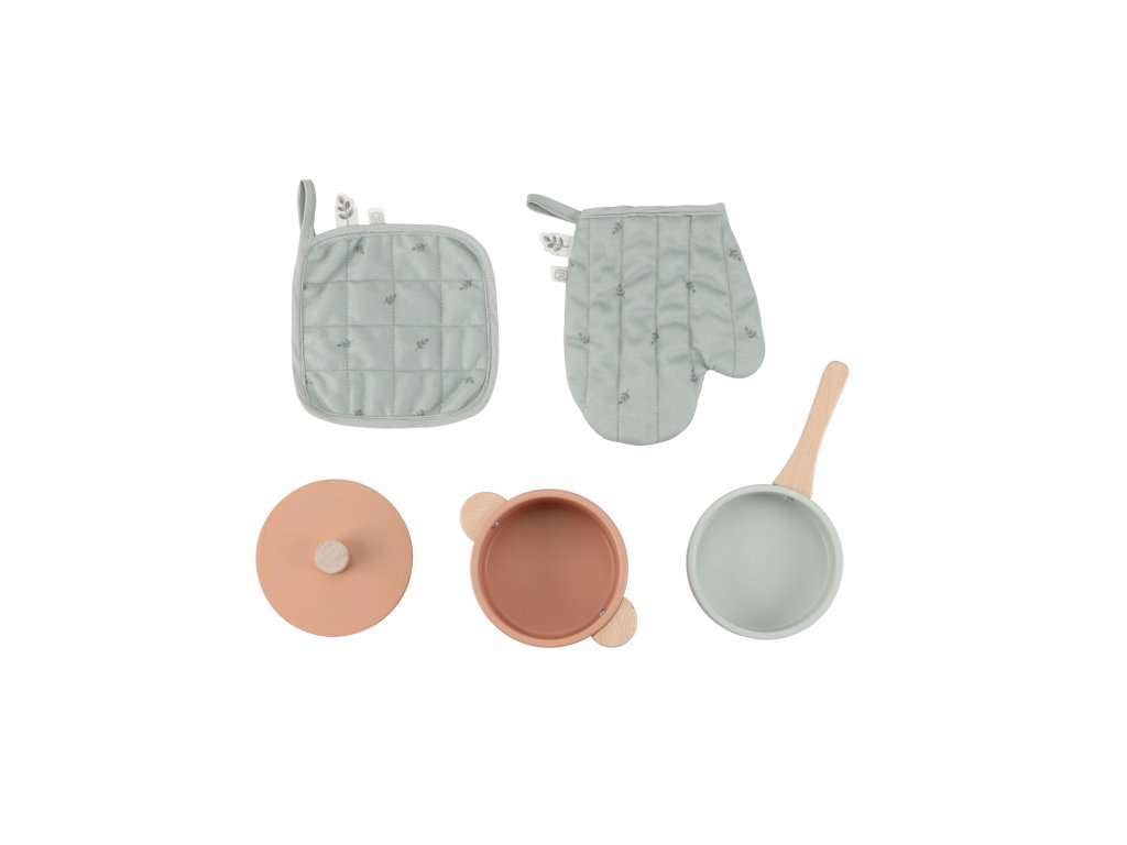 Krásná dřevěná kuchyňka Little Dutch s realistickými detaily nabízí vše, o čem malý kuchař či kuchařka sní, když vymýšlí nové recepty pro rodinu či své panenky a oblíbené plyšáky. Vaření i pečení dostává díky otočným tlačítkům s ilustracemi autentický nádech. K dispozici jsou dvě pánvičky a dvě chňapky.