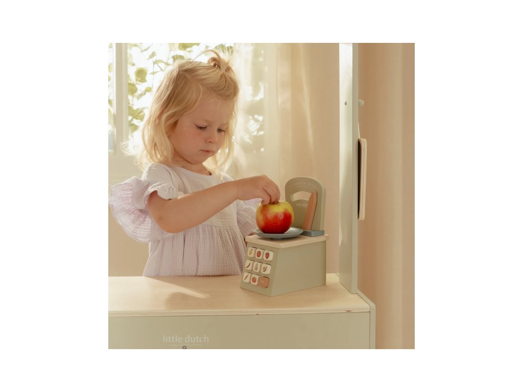 Váha bude skvělým doplňkem k dalším dřevěným hračkám Little Dutch, např. kuchyňce, prodejnímu stánku, krájecímu ovoci a zelenině apod.