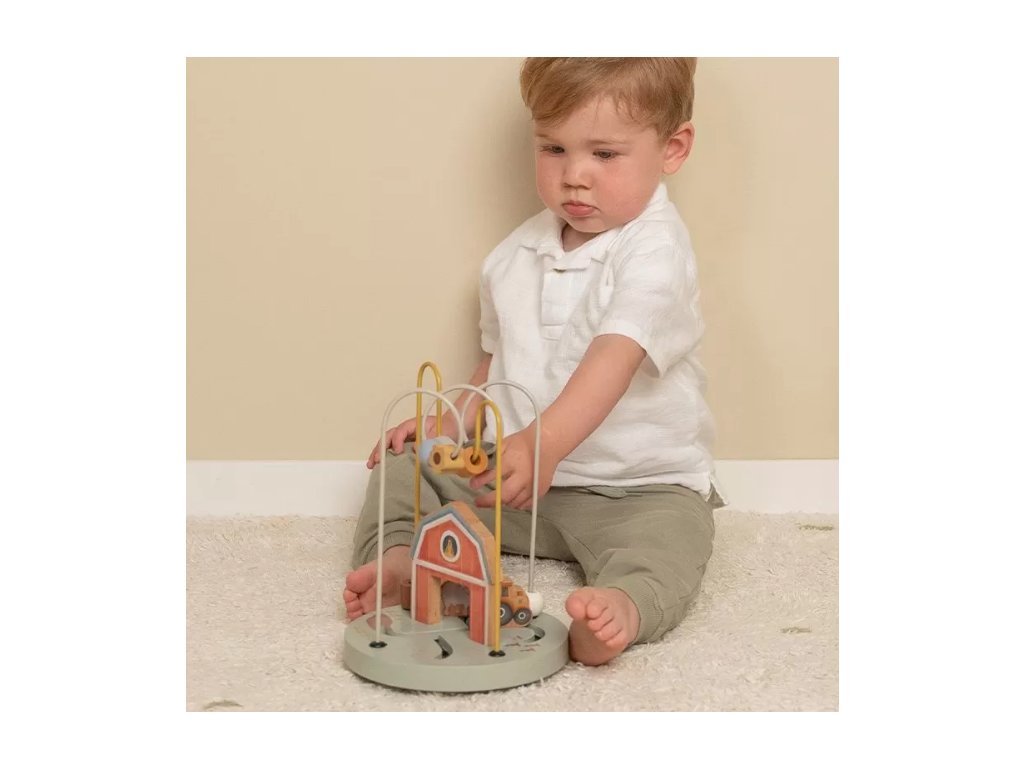 Zábavný a zároveň vzdělávací motorický labyrint z kolekce Farma od značky Little Dutch pomáhá dětem rozvíjet jemnou motoriku, koordinaci pohybů a logické myšlení.Na kovových smyčkách děti posouvají dřevěné korálky různých tvarů a barev, zatímco se seznamují s motivy ze života na farmě – zvířátka, traktor nebo jablíčka. Barevný design a kvalitní dřevěné provedení zaručují nejen dlouhou životnost, ale i bezpečnost při hře.