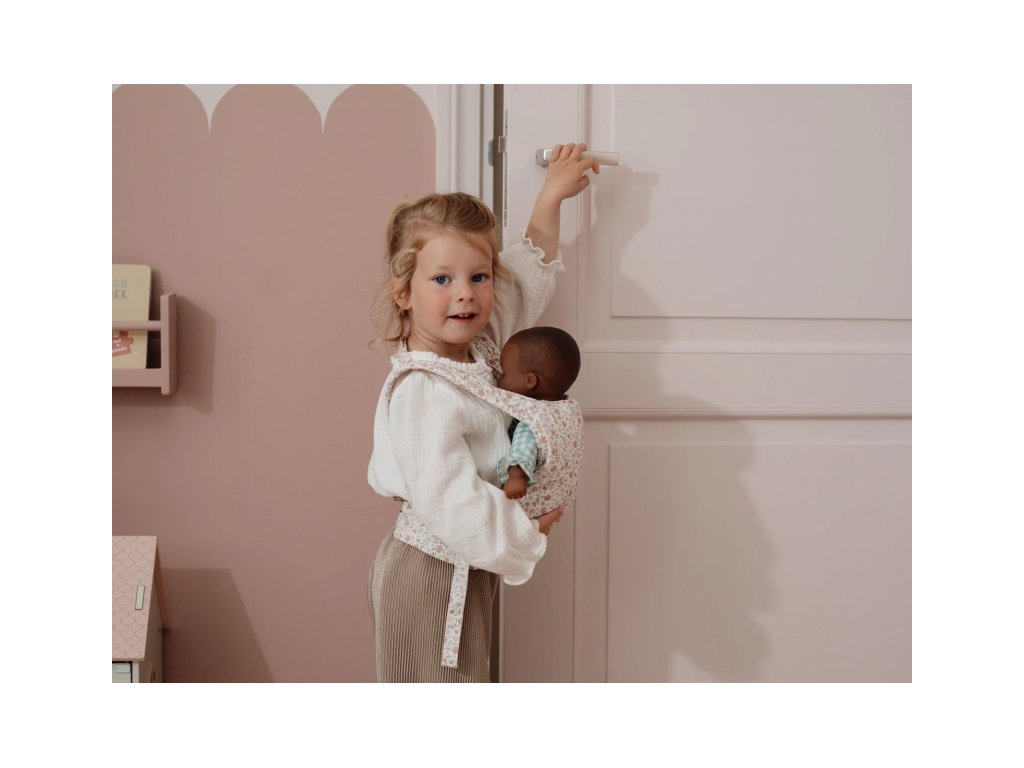 S nosítkem pro panenky Little Dutch si děti mohou vzít svou oblíbenou panenku nebo plyšového kamaráda kamkoli s sebou. Díky měkkým polstrovaným ramenním popruhům a pevnému bedernímu pásu sedí panenka bezpečně a pohodlně. Nosítko umožňuje nošení panenky jak čelem k sobě, tak čelem dopředu – stejně jako u skutečného nosítka. Hra na pečování podporuje rozvoj fantazie, empatie i sociálních dovedností.