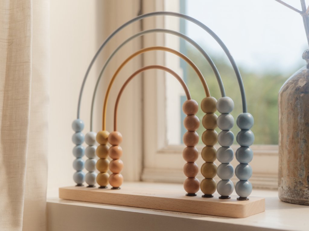Stylové, hravé a zároveň vzdělávací. Toto krásné **dřevěné počítadlo ve tvaru duhy** z kolekce **Forest Friends od Little Dutch** přináší radost z učení a zároveň je vkusným doplňkem dětského pokojíčku.Perfektní dárek pro malé objevitele světa čísel – krásný, praktický a edukativní v jednom. Skvěle ladí s dalšími produkty z kolekce Forest Friends.