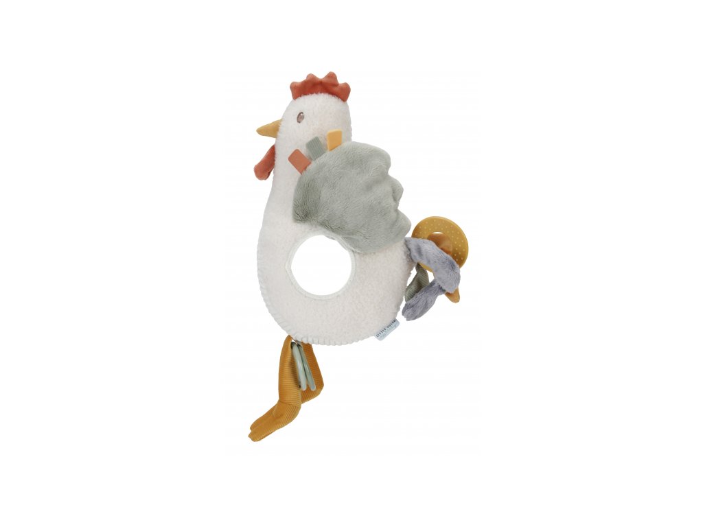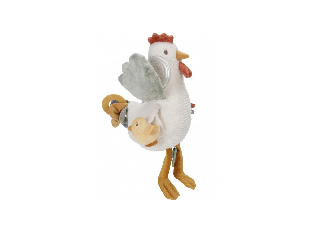 Plyšová hračka v podobě slepičky láká ke hraní a zkoumání. Slepička je je vyrobena z velmi jemného a příjemného materiálu, při pohybu chrastí, křídla po zmáčknutí šustí. Pod jedním křídlem se ukrývá roztomilé kuřátko, pod druhým křídlem bezpečné zrcátko. Hračka dítě zabaví a může sloužit i jako kamarád do postýlky pro klidné usínání.