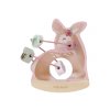 Dřevěná hračka v podobě něžné srnky se po postavení na podlahu či stůl jemně houpe a přitom se kolem ní na spirále pohybují posuvné dřevěné korálky s potiskem včelky, motýla, kytičky a lístku.