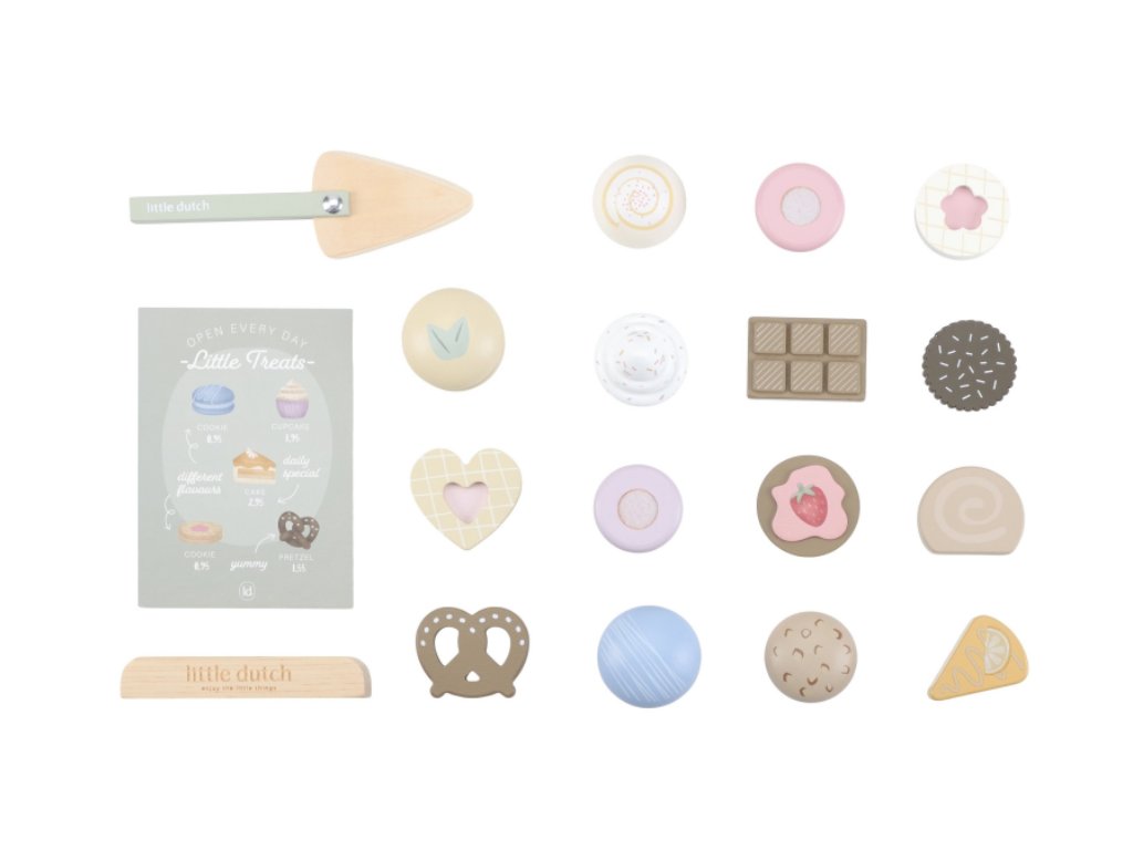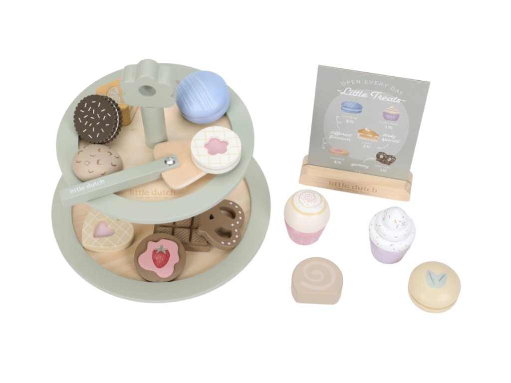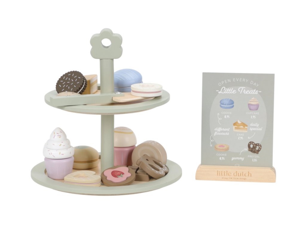 Máte chuť na sladký dezert? Nádherný stojan na cukroví Little Dutch s výběrem sladkých dobrot je jako stvořený pro všechny malé hostitele a hostitelky. Na dvou patrech mohou aranžovat a nabízet svým hostům různé druhy lákavých zákusků. Díky obrázkovému menu si hosté mohou vybírat a objednávat svou oblíbenou sladkost.