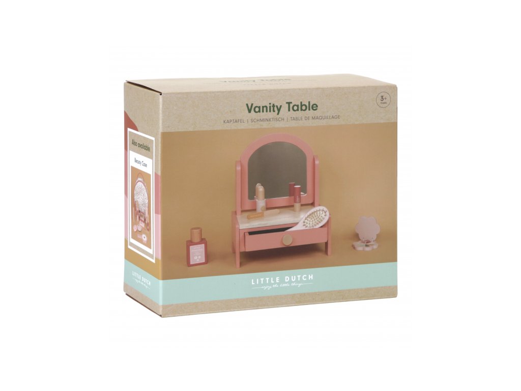 Elegantní dřevěný toaletní stoleček Little Dutch s příslušenstvím je stvořený pro malé parádnice – kombinuje krásu, funkčnost i hravost. Stolek ozdobí dětský pokoj a zároveň poskytne prostor pro imaginární péči o sebe sama. Díky pevnému zpracování a kvalitním materiálům je stoleček nejen krásnou dekorací do dětského pokoje, ale také odolnou a bezpečnou hračkou , která vydrží dlouhá léta.