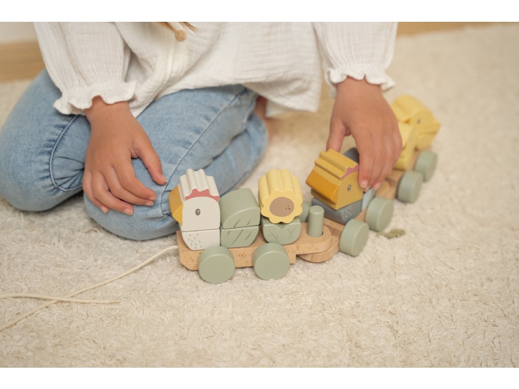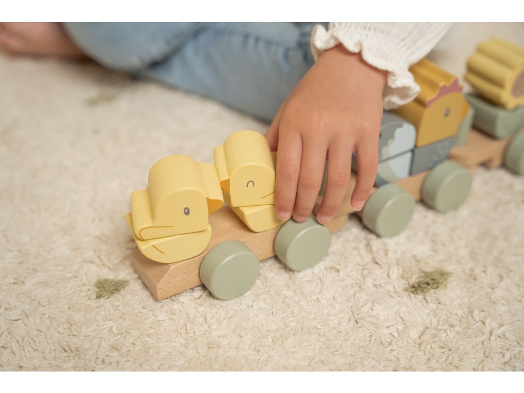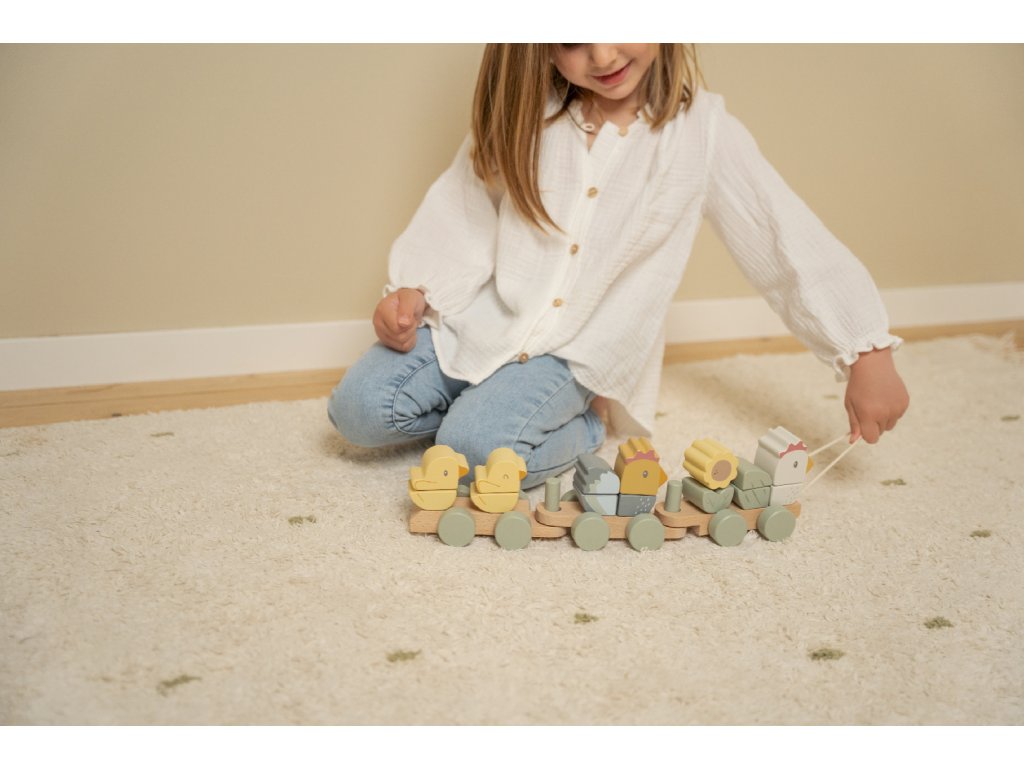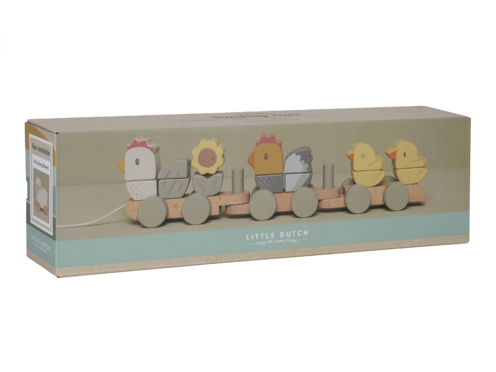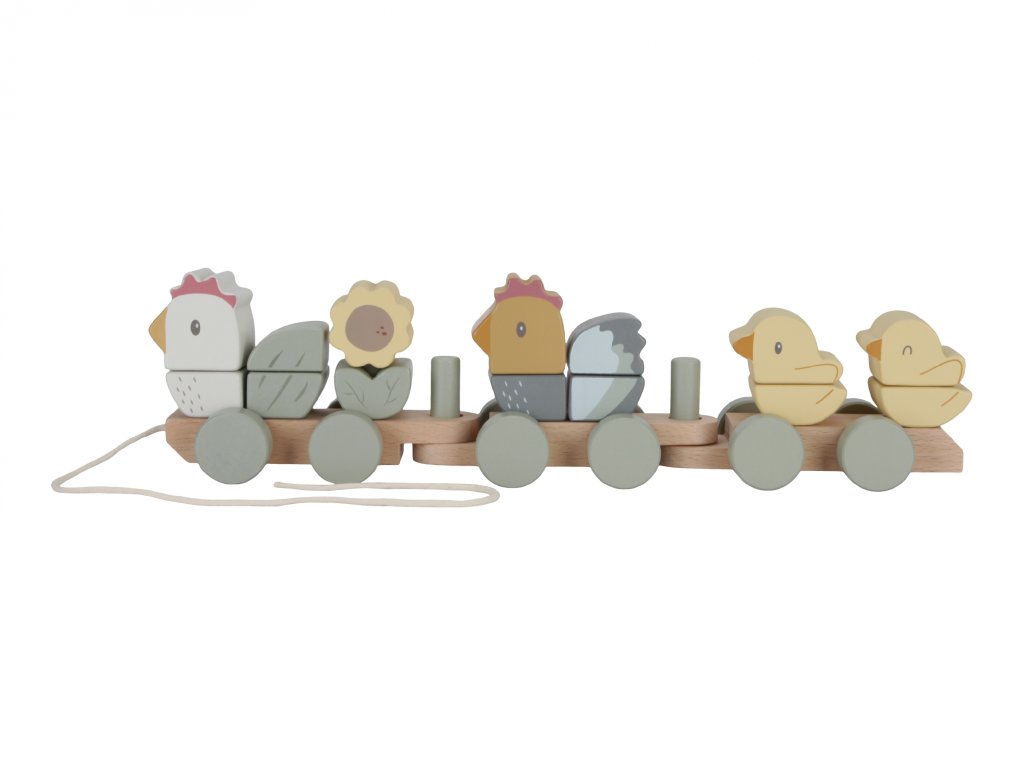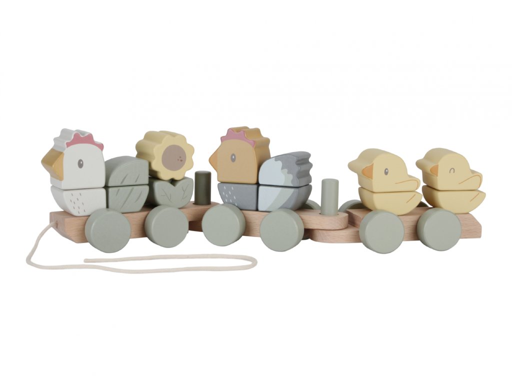 Originální dřevěný vláček z dílny Little Dutch je tvořen kostkami různých barev ve tvaru slepičky a kuřátek. Kombinováním kostek si vaše dítě může sestavovat různé varianty vagónů dle své fantazie.