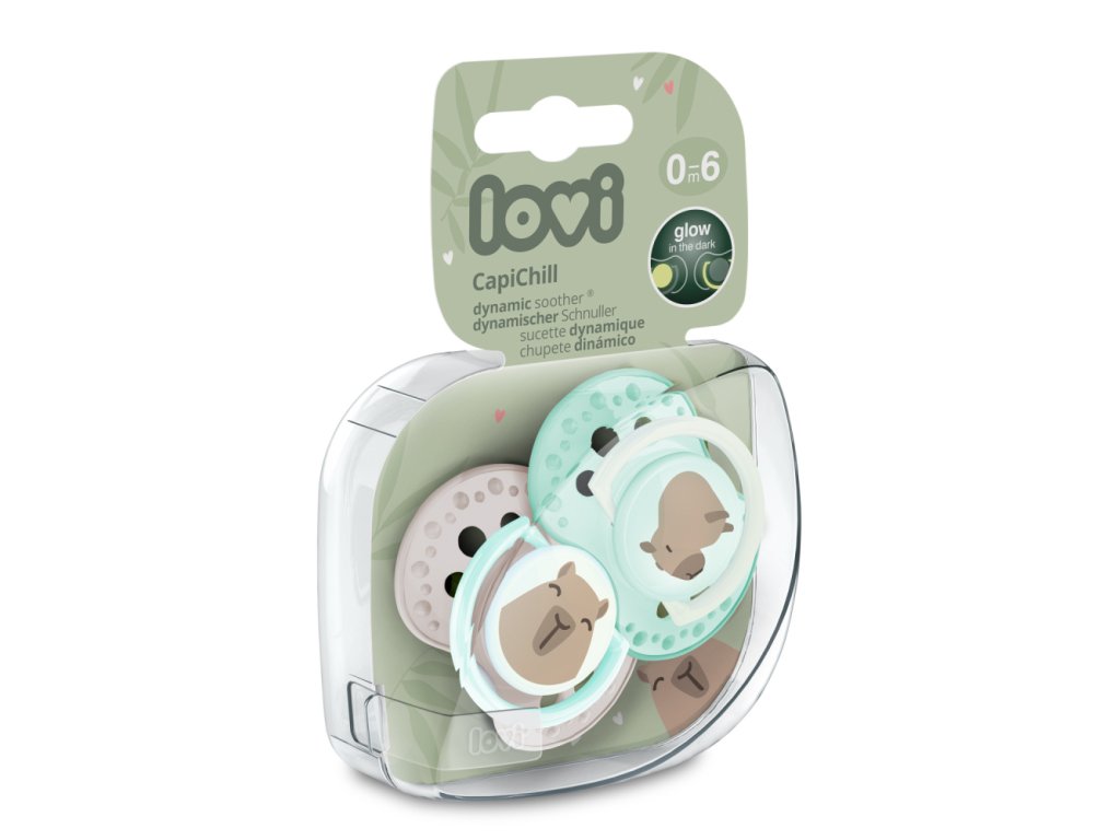 Dynamický dudlík LOVI z kolekce CAPICHILL je bezpečný pro sací reflex a nenarušuje vývoj řeči a skusu. Dudlík se díky unikátní konstrukci ze silikonu různé tloušťky natahuje a stahuje podle rytmu sání dítěte. Díky tomu chrání jeho sací reflex a nemá nepříznivý vliv na kojení. Symetrický tvar špičky vychází z tvaru bradavky naplněné mlékem, která poskytuje miminku známý pocit podobný pocitu z prsu.