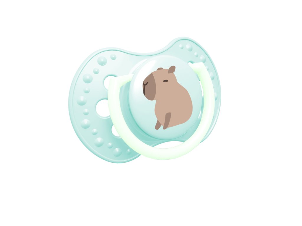 Dudlík má střed a úchytku svítící ve tmě, což usnadňuje jeho hledání v noci.