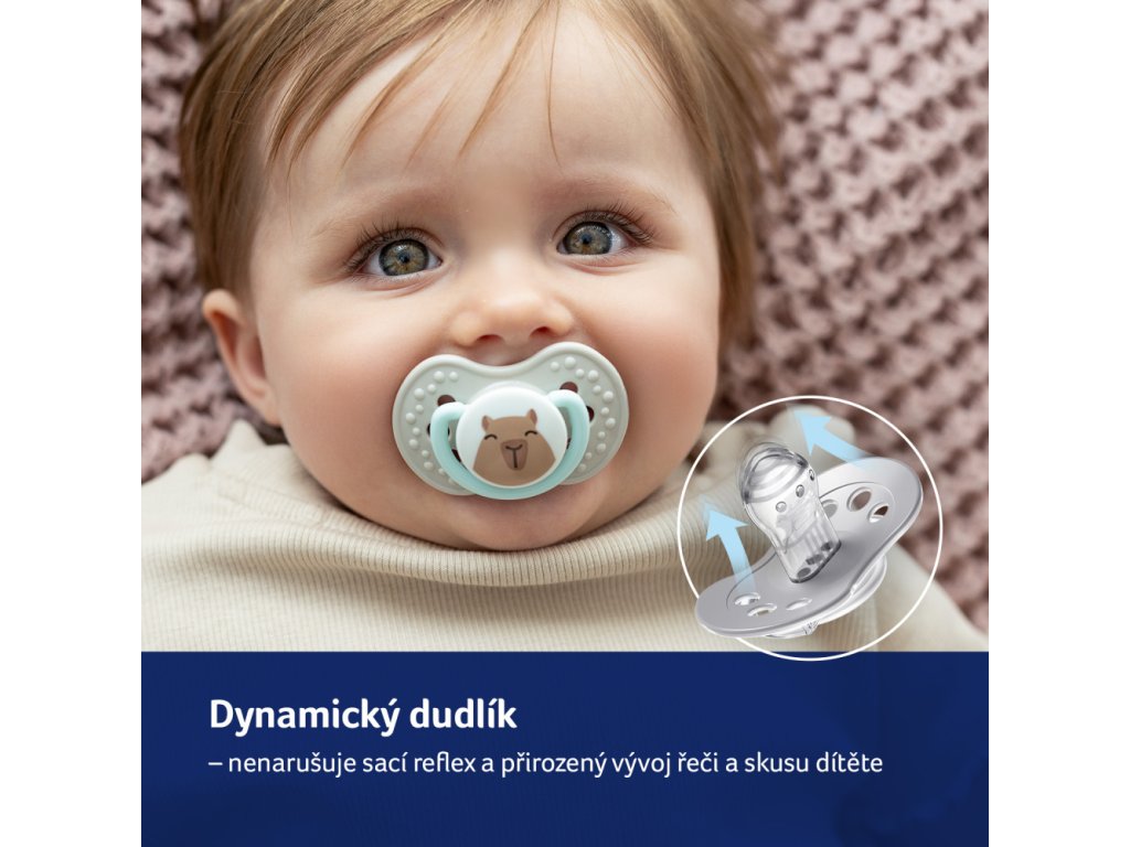 Dynamický dudlík LOVI z kolekce CAPICHILL je bezpečný pro sací reflex a nenarušuje vývoj řeči a skusu*.