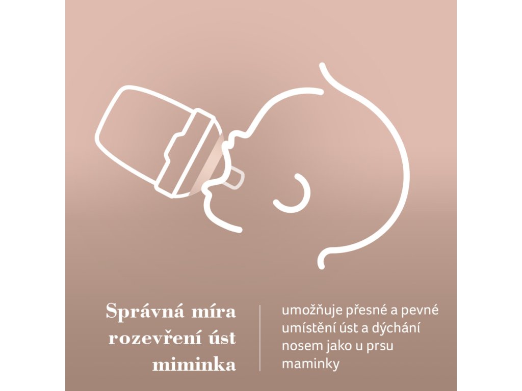 - Tvar a proporce podle vzoru maminčiných prsou zajišťují, aby ústa dítěte byla umístěna ve správném úhlu