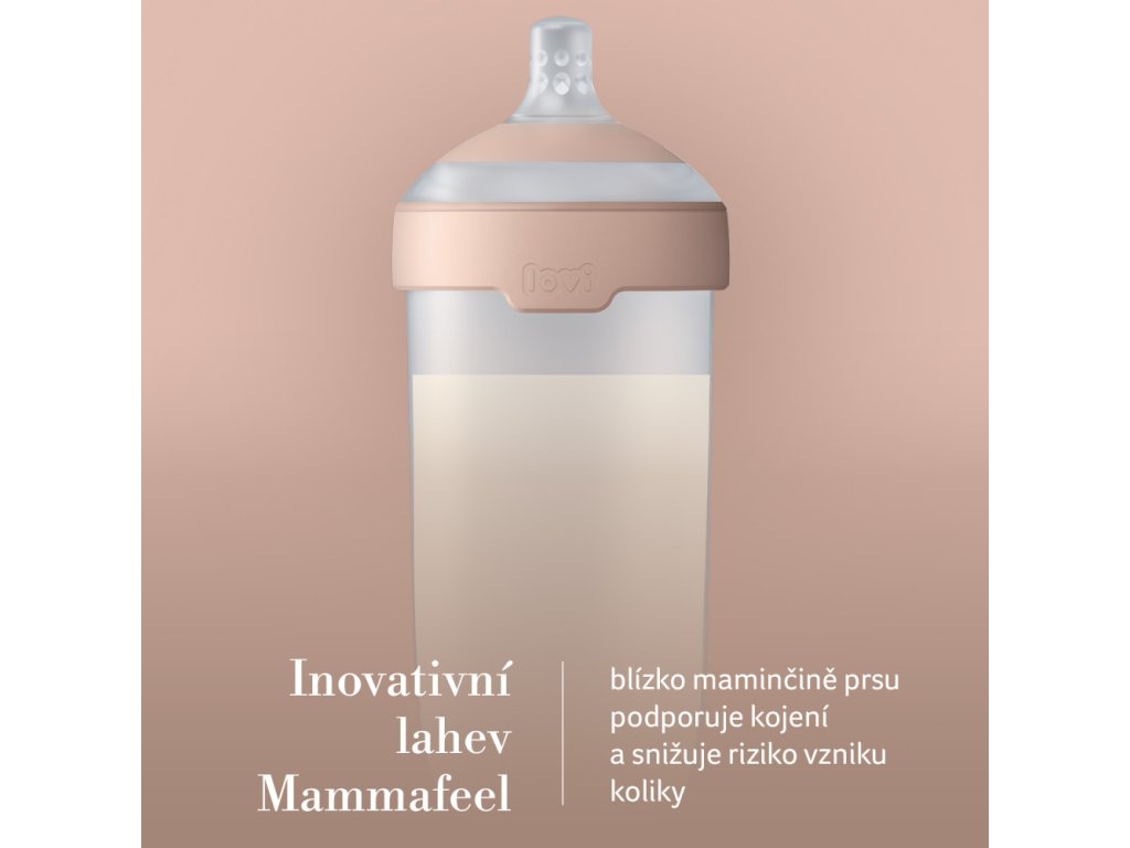 Inovativní lahev Mammafeel co nejvíce připomíná maminčina ňadra, pokud jde o barvu, tvar, teplo a dynamiku. Dynamická savička umožňuje sání v přirozeném rytmu a nenarušuje sací reflex.
