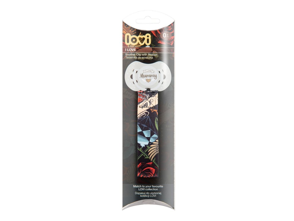 STYLOVÁ A PRAKTICKÁ! To je NOVINKA od značky LOVI – stužka na dudlík z designové kolekce I LOVE. Látková stužka s klipem slouží k pevnému a stabilnímu připevnění dudlíku k oblečení miminka a chrání tak dudlík před ušpiněním nebo ztrátou.