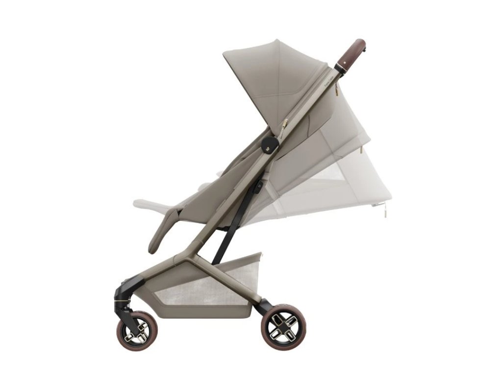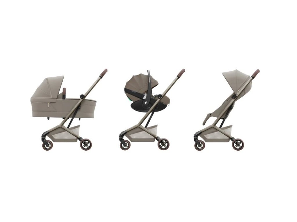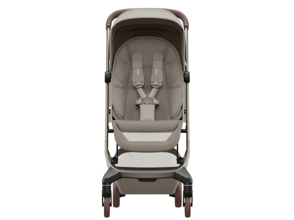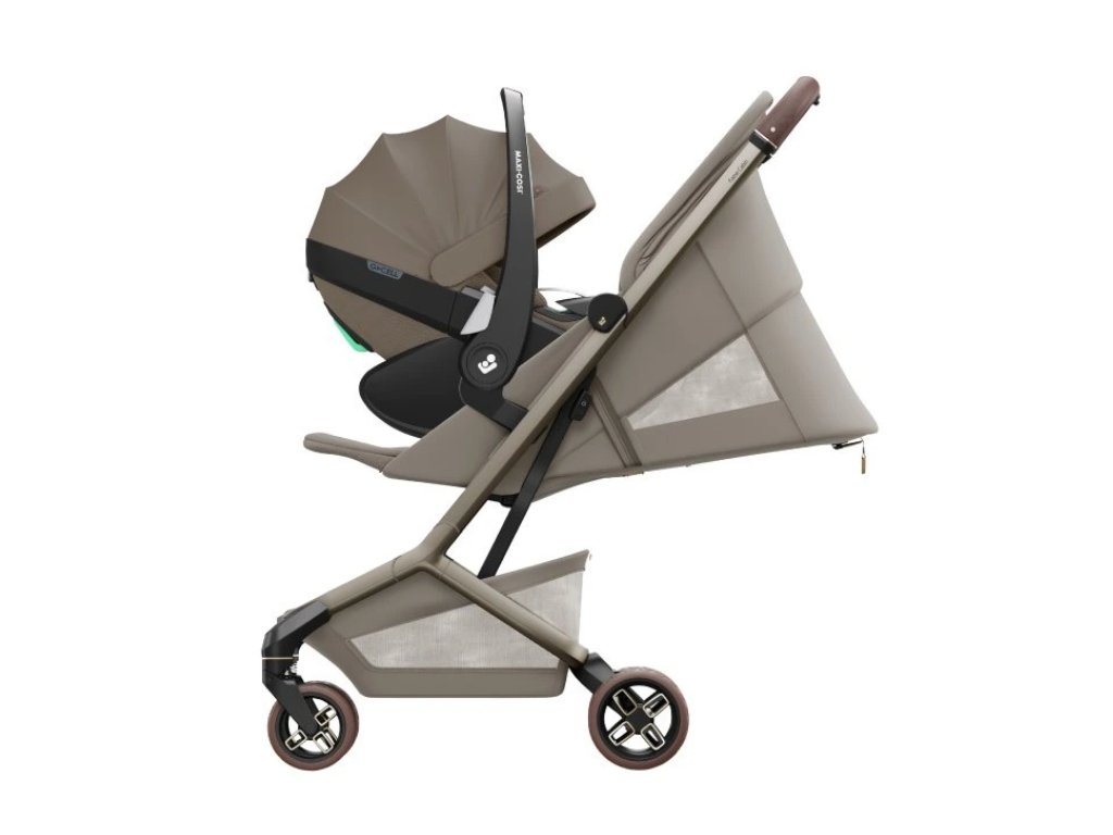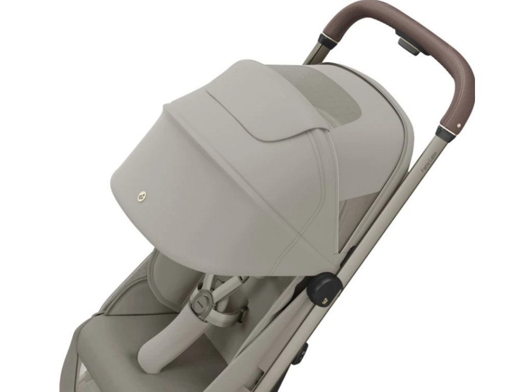 Velká stříška s UPF 50+ chrání dítě před sluncem a vytváří příjemný stín v horkých dnech. Elegantní vzhled doplňuje ergonomická rukojeť z veganské kůže, která se pohodlně drží, a je možné dokoupit i madlo před dítě potažené veganskou koženkou. Odnímatelný sedák umožňuje vytvořit cestovní systém Maxi-Cosi – kočárek je kompatibilní s autosedačkami Maxi-Cosi kategorie 0 (například Maxi-Cosi Coral Slide Pro) i s korbičkou pro novorozence, které se prodávají samostatně. S adaptéry pro autosedačku tak získáte kompletní cestovní systém od narození do 4 let.