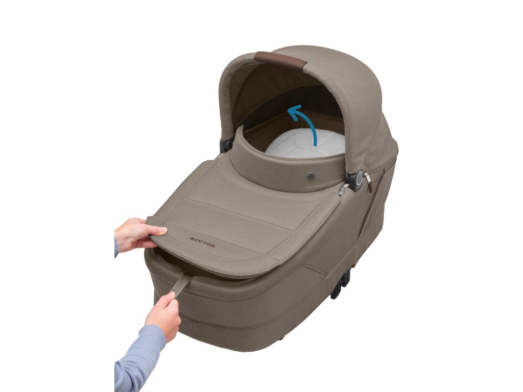 Prostorná korbička Maxi-Cosi Sense s oboustrannou prodyšnou ClimaFlow matrací z paměťové pěny a ventilačním okénkem poskytne vašemu miminku pohodlí při spánku a optimální větrání i během teplých letních dní. Integrovaný systém SoothingSlope umožňuje jednoduchým způsobem vytvořit lehce nakloněnou polohu pro spaní, která pomáhá minimalizovat riziko refluxu. Velká sklápěcí stříška ochrání dítě před sluncem a nepříznivým počasím. Připevnění na podvozek kočárku je velmi jednoduché s pomocí přiložených adaptérů. Korbičku lze složit do kompaktního plochého tvaru a díky tomu snadno skladovat či přepravovat.