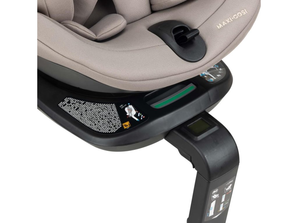 Autosedačka se do auta připevňuje s pomocí úchytů Isofix. Podpůrná noha v případě nárazu pomáhá udržet autosedačku na místě. Indikátor správné instalace s digitálním displejem ukazuje správnost připevnění úchytů Isofix a podpůrné nohy a uzamčení otočného systému.