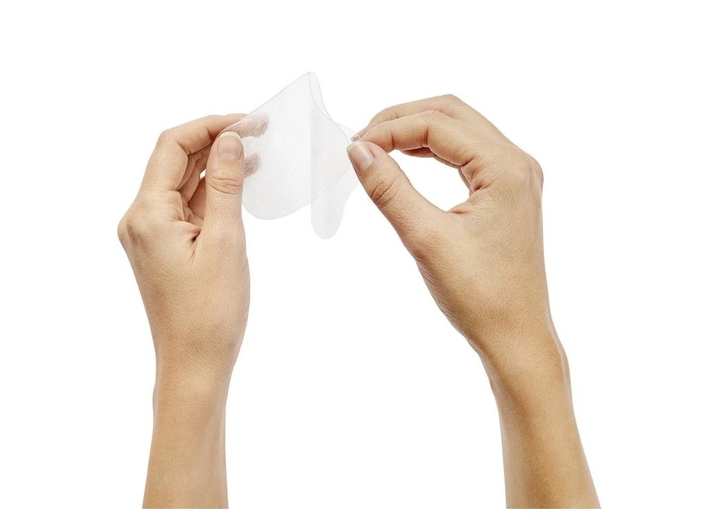 - Nejprve si umyjte ruce, poté otevřete sterilní obal a oddělte hydrogelový polštářek od plastové fólie.