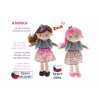 Látková panenka Aninka má měkké tělíčko a mluví česky. Na sobě má sukénku a vestičku. Vybírat můžete ze dvou variant.