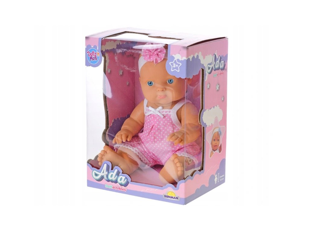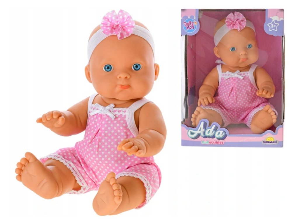 Miminko Ada o výšce 23 cm s krásnou růžovou čelenkou je roztomilá panenka, která potěší všechny malé maminky a tatínky. S její usmívající se tvářičkou a barevnou čelenkou je ideálním společníkem pro každodenní hraní i péči. Díky pevnému plastovému tělu a jemným detailům se stane nejen oblíbenou hračkou, ale také skvělým doplňkem pro každou sbírku panenek.