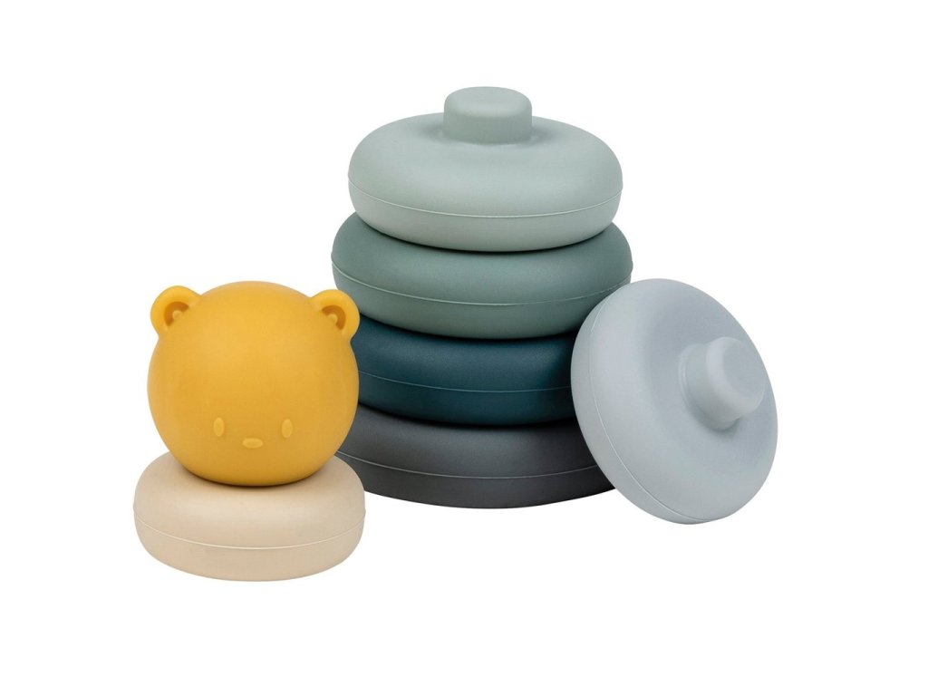 Je vyrobena z vysoce kvalitního silikonu, testovaného podle EU norem všechny normy pro hračky Stohovací hračku lze použít nejen v interiéru, ale i ve vaně a exteriéru, ať už na zahradě nebo výletě u vody, pomáhá miminkům učit se barvy, počítat, trénovat reakce, logické a motorické dovednosti.