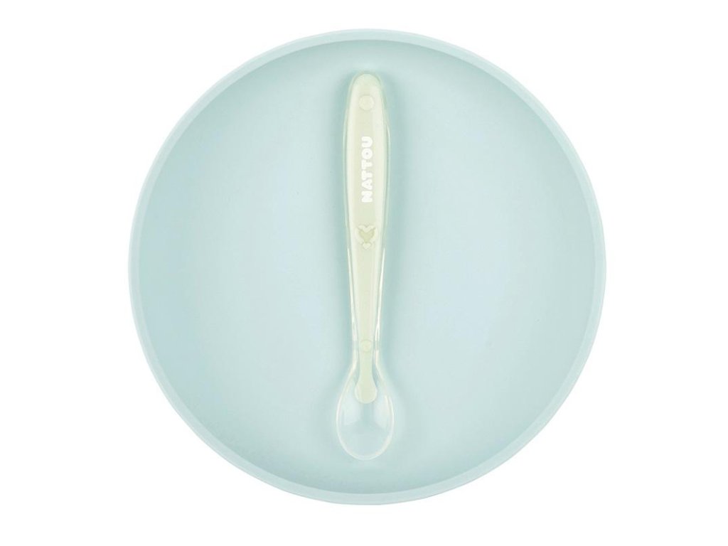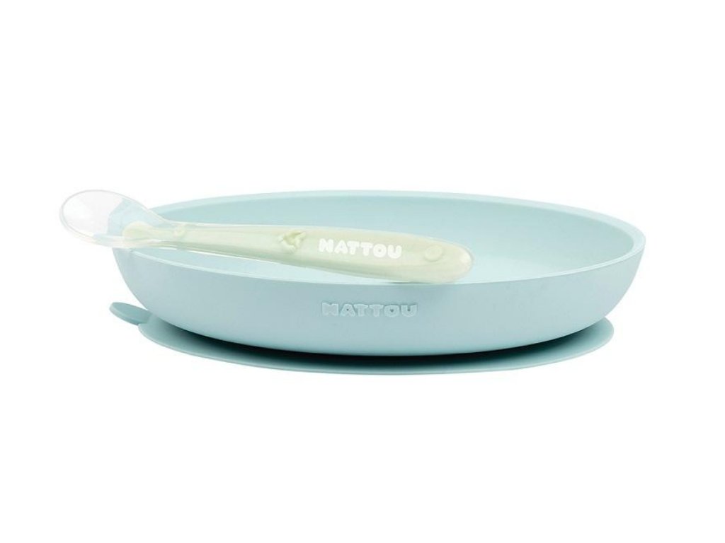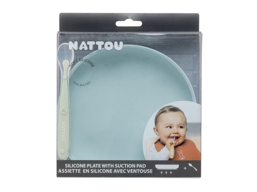 Dvoudílný jídelní set od Nattou z měkkého silikonu je velmi praktický, snadno uchopitelný a protiskluzový. Set obsahuje talířek s přísavkou a lžičku. Zaoblené vnitřní hrany talířku usnadňují nabírání potravin dětičkám a jejich rodičům.