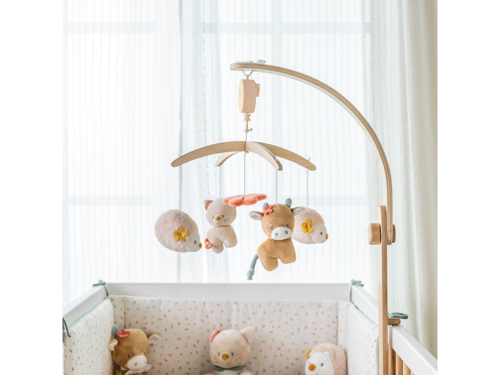 S týmito roztomilými zvieratkami je kolotoč nielen poutačom pozornosti v detskom izbe, ale podporuje aj sluchové vnímanie vášho dieťatka vďaka vstavanej hudobnej skrinke, ktorá pokaždým hrá jemnú melódiu „Le-La-Lu“.