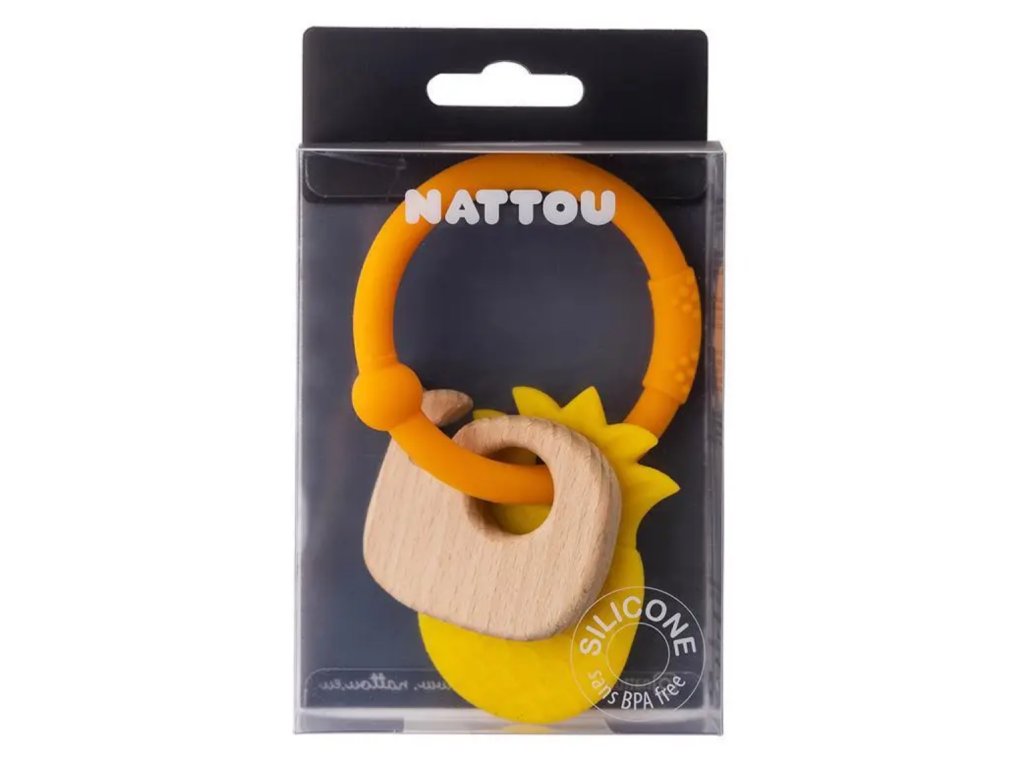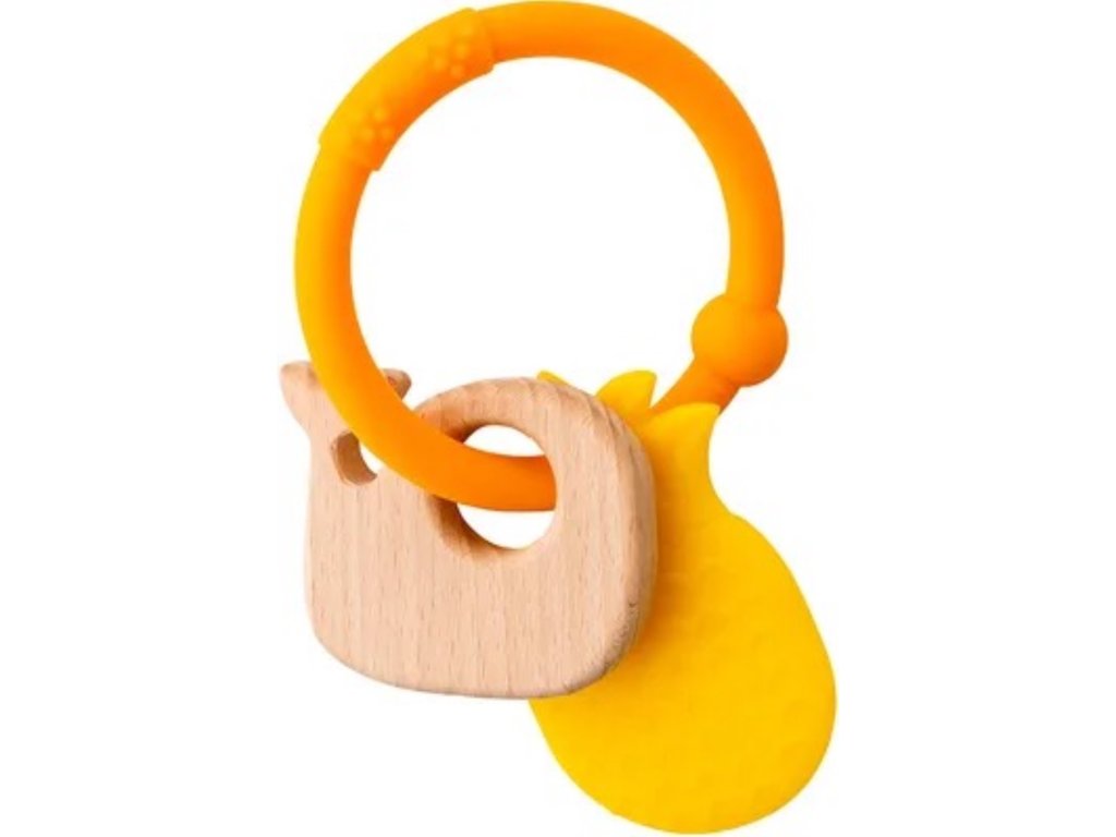 Silikonové kousátko, složené ze tří různých částí, zmírní bolest při prořezávání prvních zoubků. Díky svému tvaru a designu na rozvoj motorických dovedností malých ručiček.