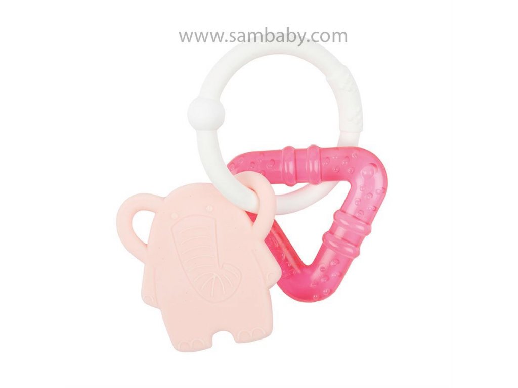 Silikonové kousátko, složené ze tří různých částí, zmírní bolest při prořezávání prvních zoubků. Může být použito i jako jednoduché chrastítko a také díky svému tvaru a designu na rozvoj motorických dovedností malých ručiček. Krásný decentní design.