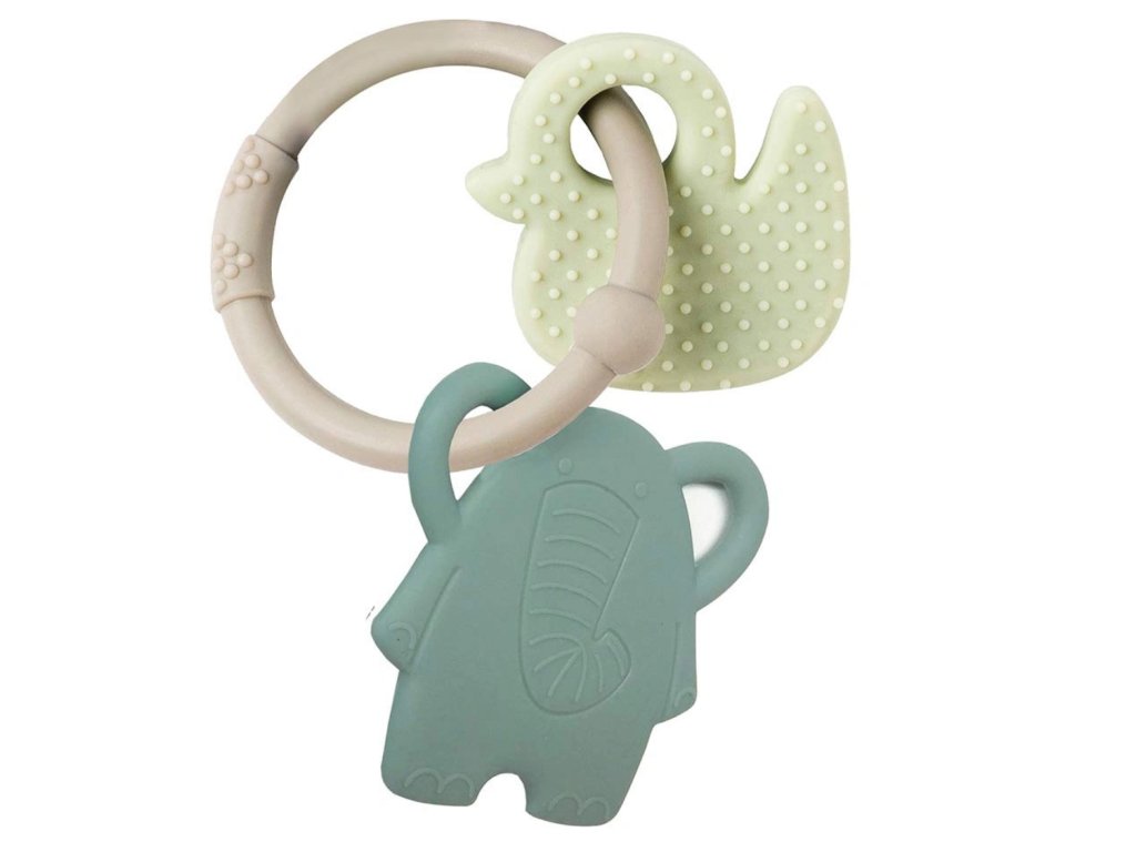 Nattou kousátko silikónové zelené Sloník a Kačenka