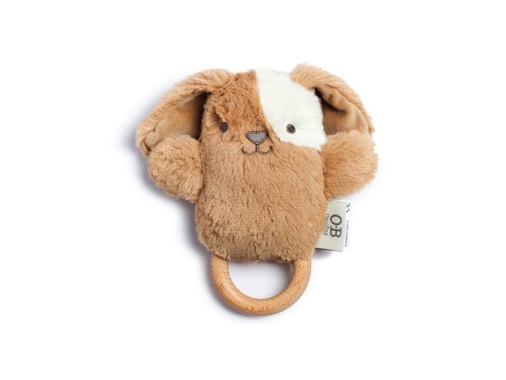 OB Designs Plyšové chrastítko pejsek -Taupe White