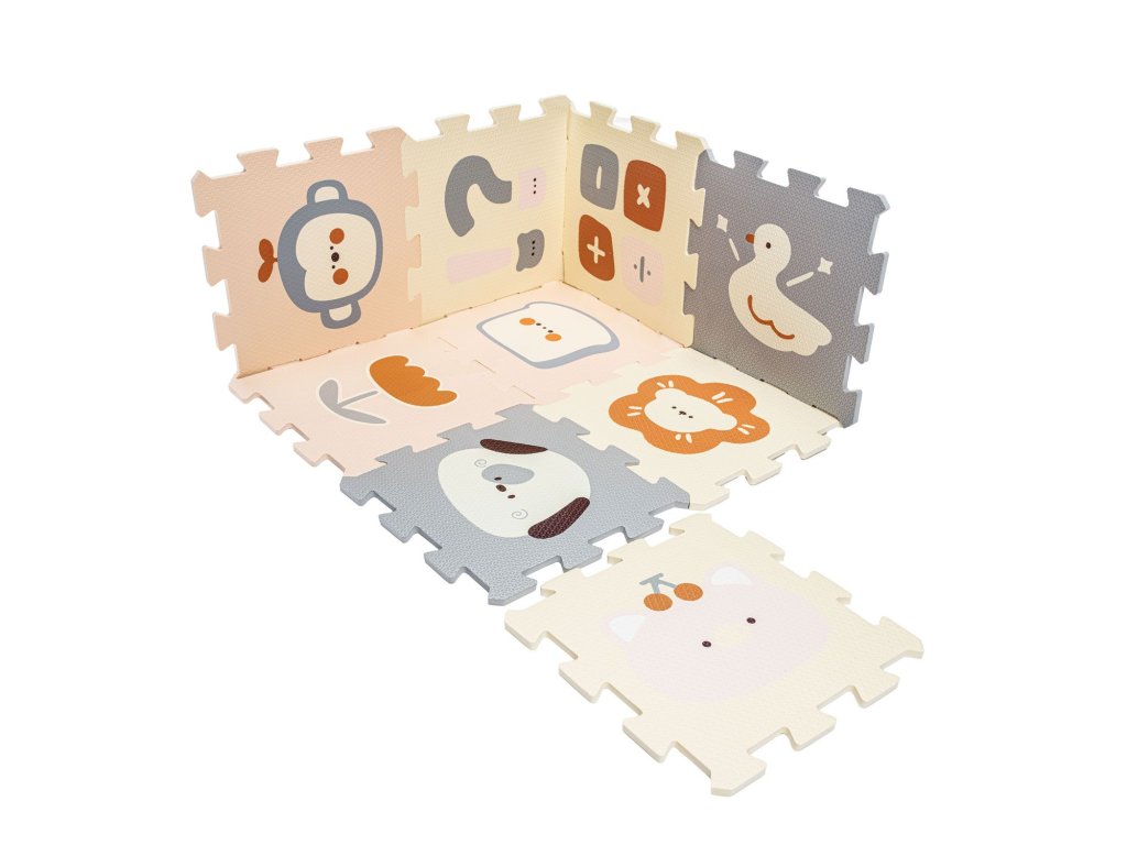 Pěnové puzzle je vyrobené z kvalitní EVA pěny. Plní funkci nejen podložky, která zajistí pohodlí díky izolaci od chladu, ale zároveň praktické pomůcky pro první měsíce miminka, kdy poskytuje měkkou oporu při pasení koníčku nebo prvním lezení.