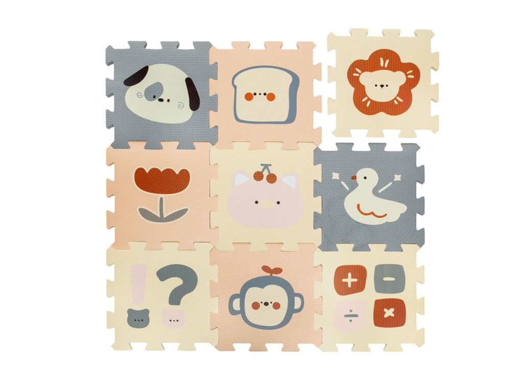 Jednotlivé dlaždice 30 × 30 cm (9 ks) na sebe perfektně navazují. Podložka je vhodná pro děti od narození, vyrobená z nezávadného a příjemného materiálu.