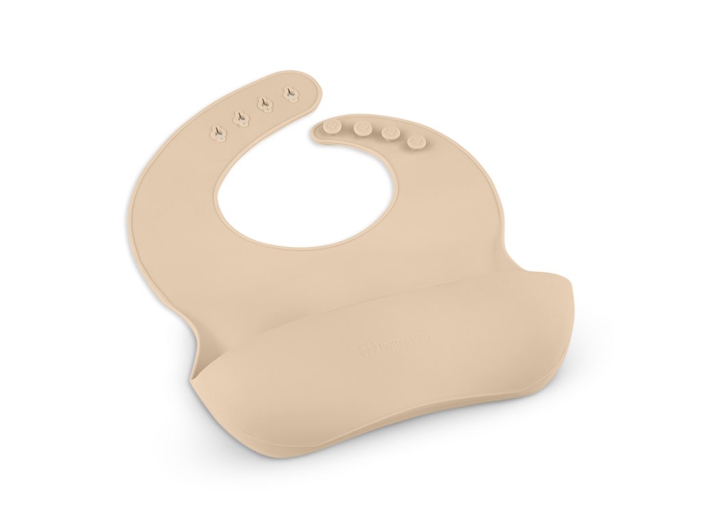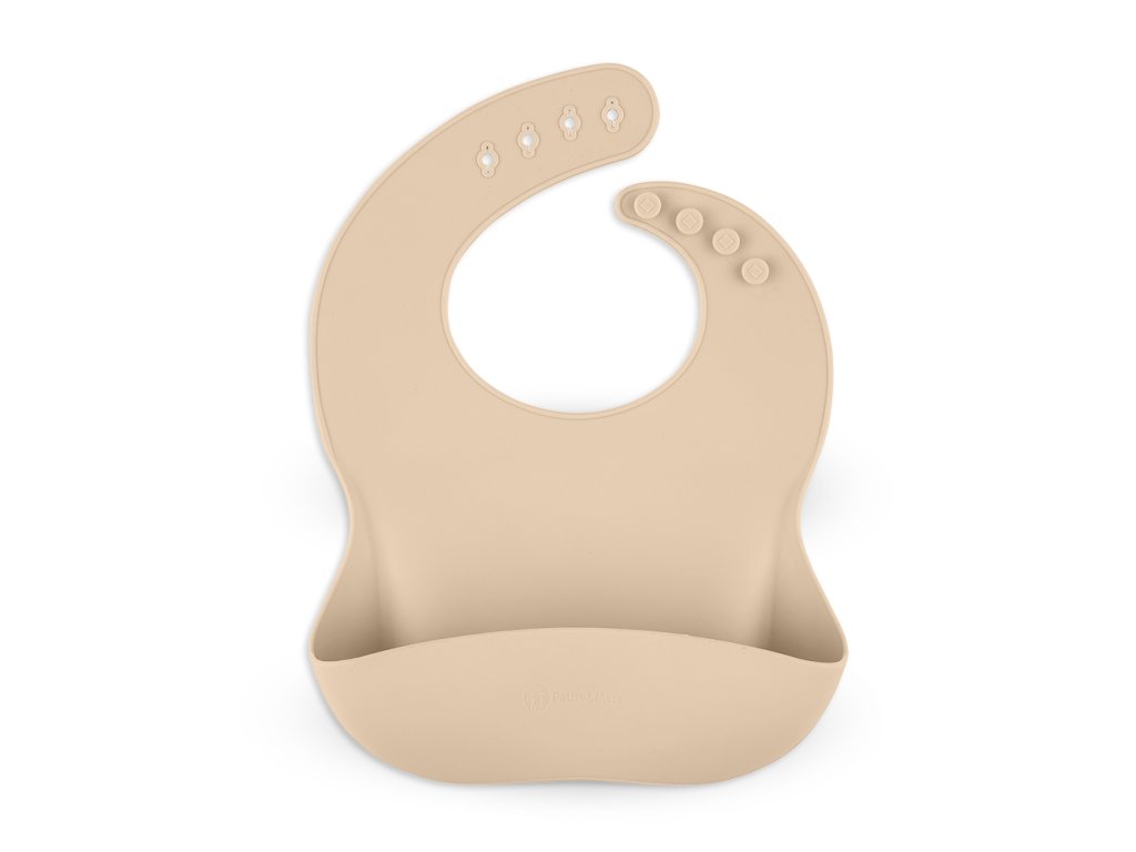 Bryndák je vyroben z potravinářského silikonu bez obsahu BPA. Je určen pro malé děti od 6 měsíců, kterým se zavádějí první příkrmy, a pro ty, které se již úspěšně učí samostatně jíst. Má nastavitelné zapínání, které umožňuje přizpůsobit jej velikosti krku dítěte. To znamená, že bryndák roste spolu s děťátkem. Díky ergonomickému tvaru a měkkému materiálu se bryndák pohodlně nosí a neomezuje pohyb dítěte při jídle. Dá se také srolovat, a proto nezabírá moc místa v tašce, když jedete na procházku nebo na výlet.