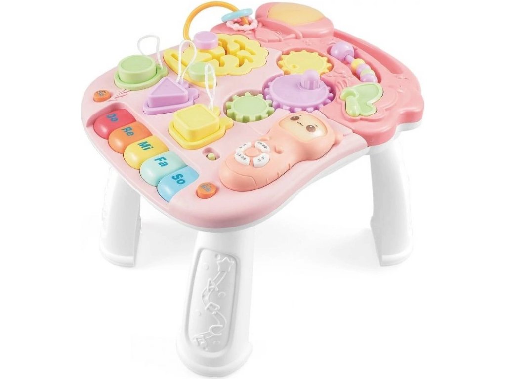 Velice snadno ho přeměníte na hudební interaktivní stolek, který zabaví děťátko na velmi dlouhou dobu. Samotný hrací panel můžete také odejmout a pověsit, ať už na postýlku nebo jej vzít s sebou do auta. Hrací panel obsahuje barevné piáno, bludiště, zábavné dílky různých tvarů, odnímatelný telefon a mnoho dalšího.