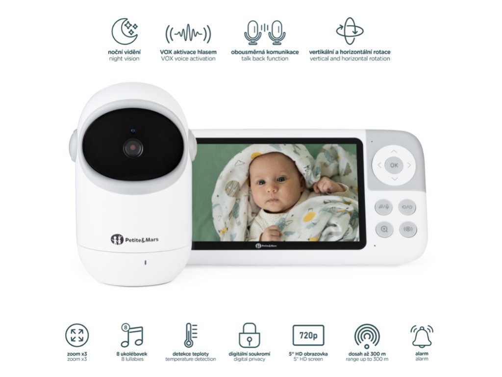 Funkce alarmu slouží jako časovač či připomínka – například na krmení, přebalení nebo kontrolu miminka. Navíc tato dětská chůvička nabízí mnoho funkcí, které usnadňují každodenní péči.
