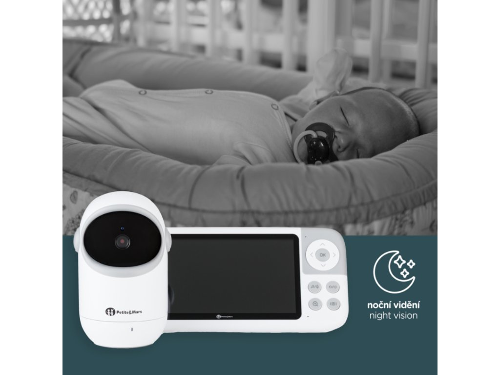 Chůvička je vybavena kamerou s možností dálkového ovládání, takže máte obraz neustále pod kontrolou – ať se dítě pohne kamkoliv. Systém lze rozšířit až na 4 kamery, což z něj činí ideální řešení pro více místností nebo více dětí.