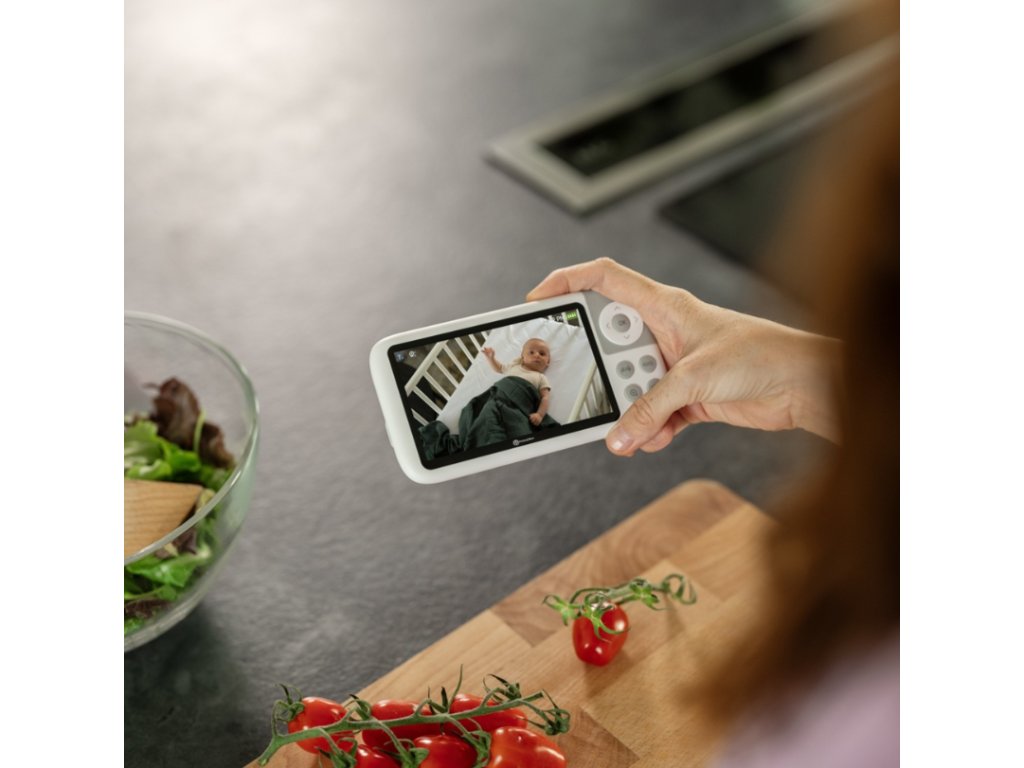 Kamera EVE 5.0 byla navržena tak, abyste měli vždy dokonalý vizuální přehled o svém dítěti. Obraz se přenáší v HD kvalitě (720p) na 5" LCD displej rodičovské jednotky, takže vidíte každý detail – i v noci nebo z větší vzdálenosti.