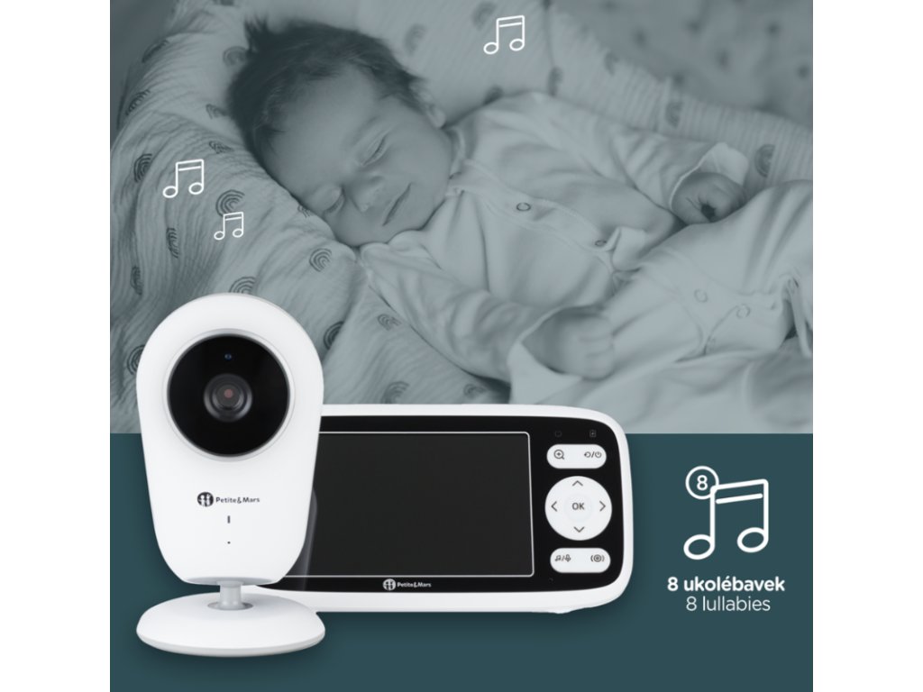 Z rodičovské jednotky můžete snadno spustit jednu z osmi jemných melodií, které navodí příjemnou atmosféru při usínání nebo nočním buzení – i když právě nejste u postýlky.