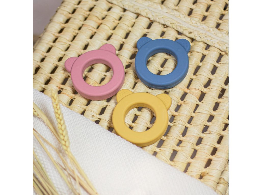 Měkké silikonové kousátko ve tvaru roztomilého medvídka je vyrobeno výhradně z potravinářského silikonu bez obsahu BPA.