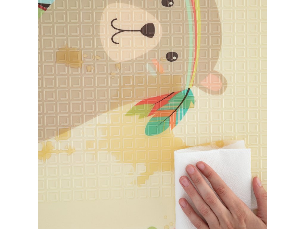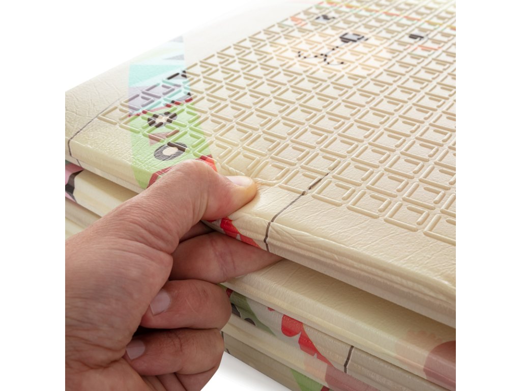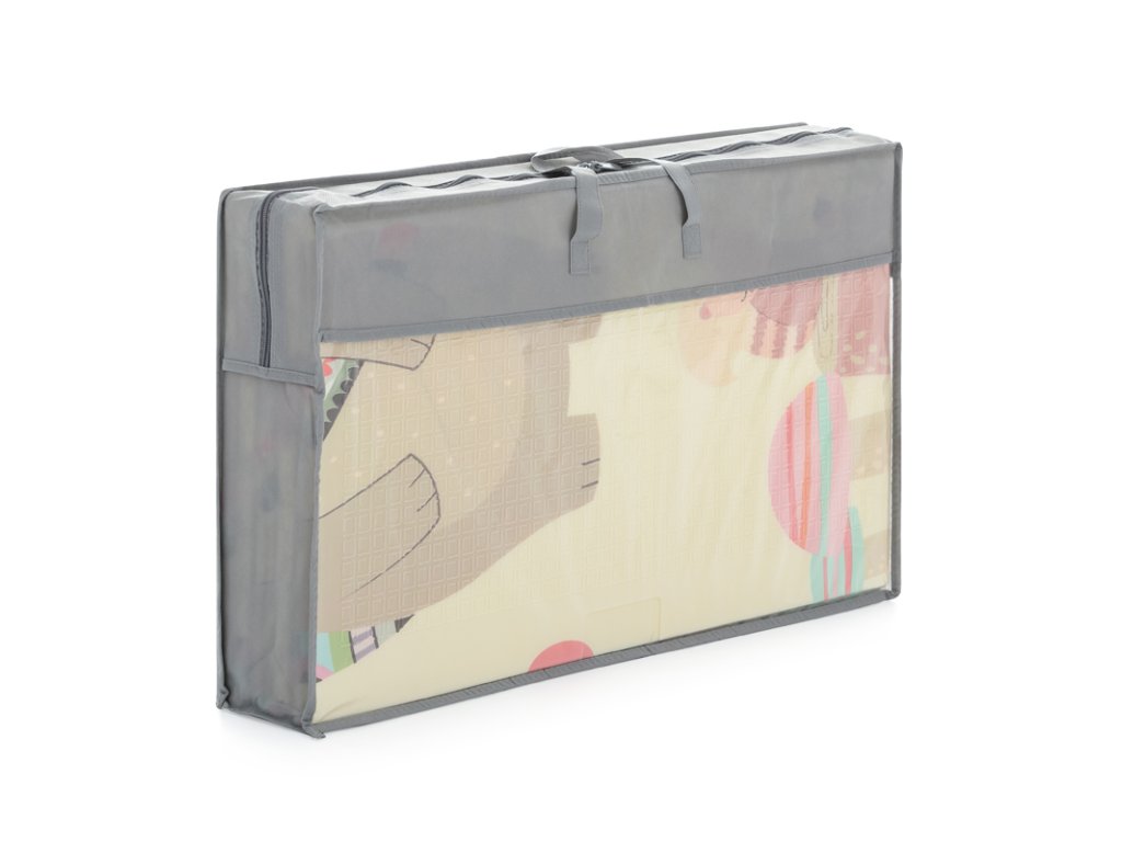 Měkká skládací podložka pro bezpečnou hru vašeho děťátka. Vhodná od narození. Podložka má oboustranný potisk s veselými motivy, protiskluzovou úpravu na povrchu, skvěle izoluje, je voděodolná, jemná na povrchu, elastická, avšak tvarově stabilní, skladná a především poskytuje dětem bezpečí při hře. Dá se složit do praktické přenosné tašky, která je součástí produktu. Díky své lehkosti a jednoduchému skládání je podložka snadno přenosná a vhodná pro použití uvnitř i venku.